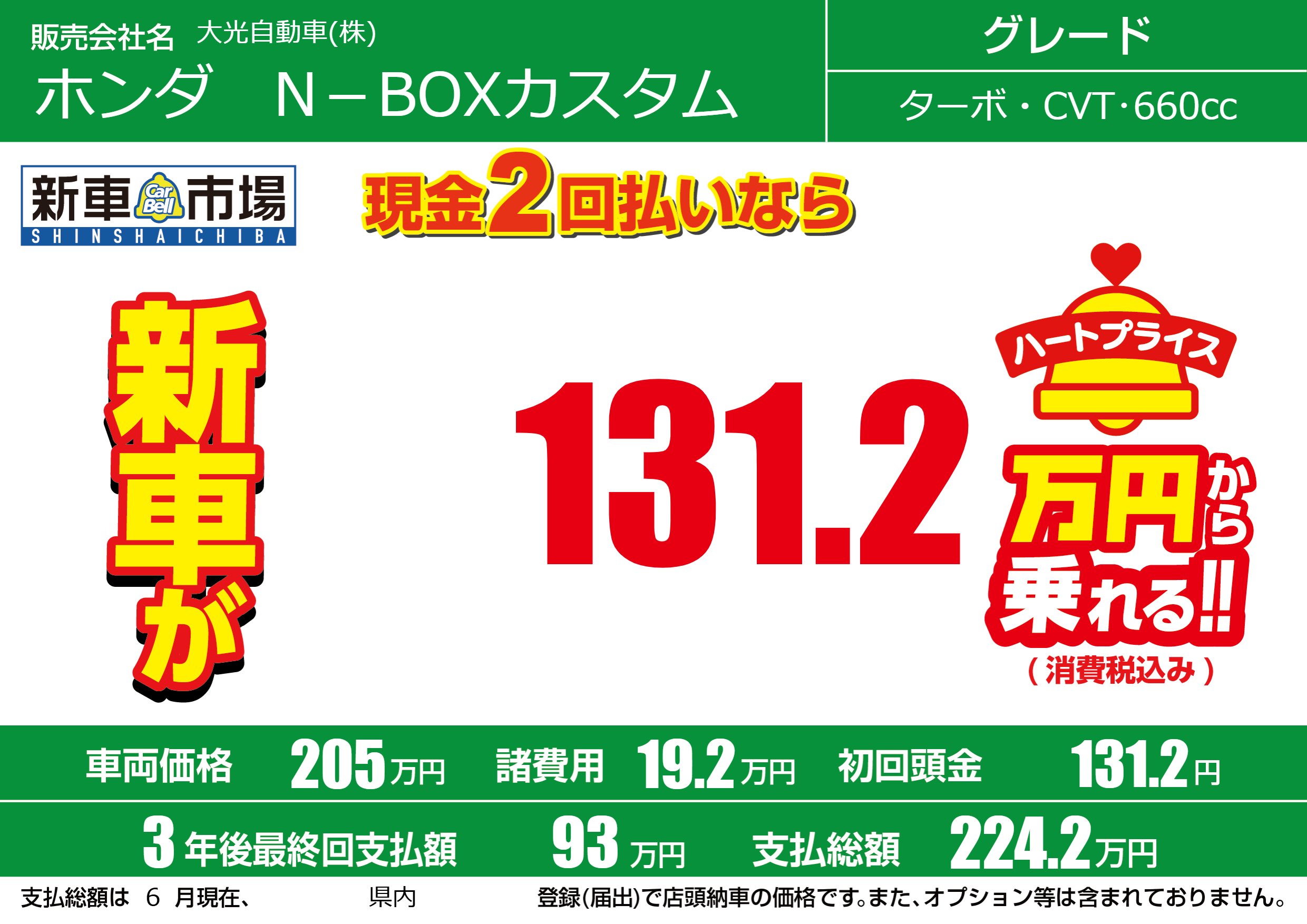 | 車名 | ホンダ N-BOXカスタム | グレード ミッション 排気量 |