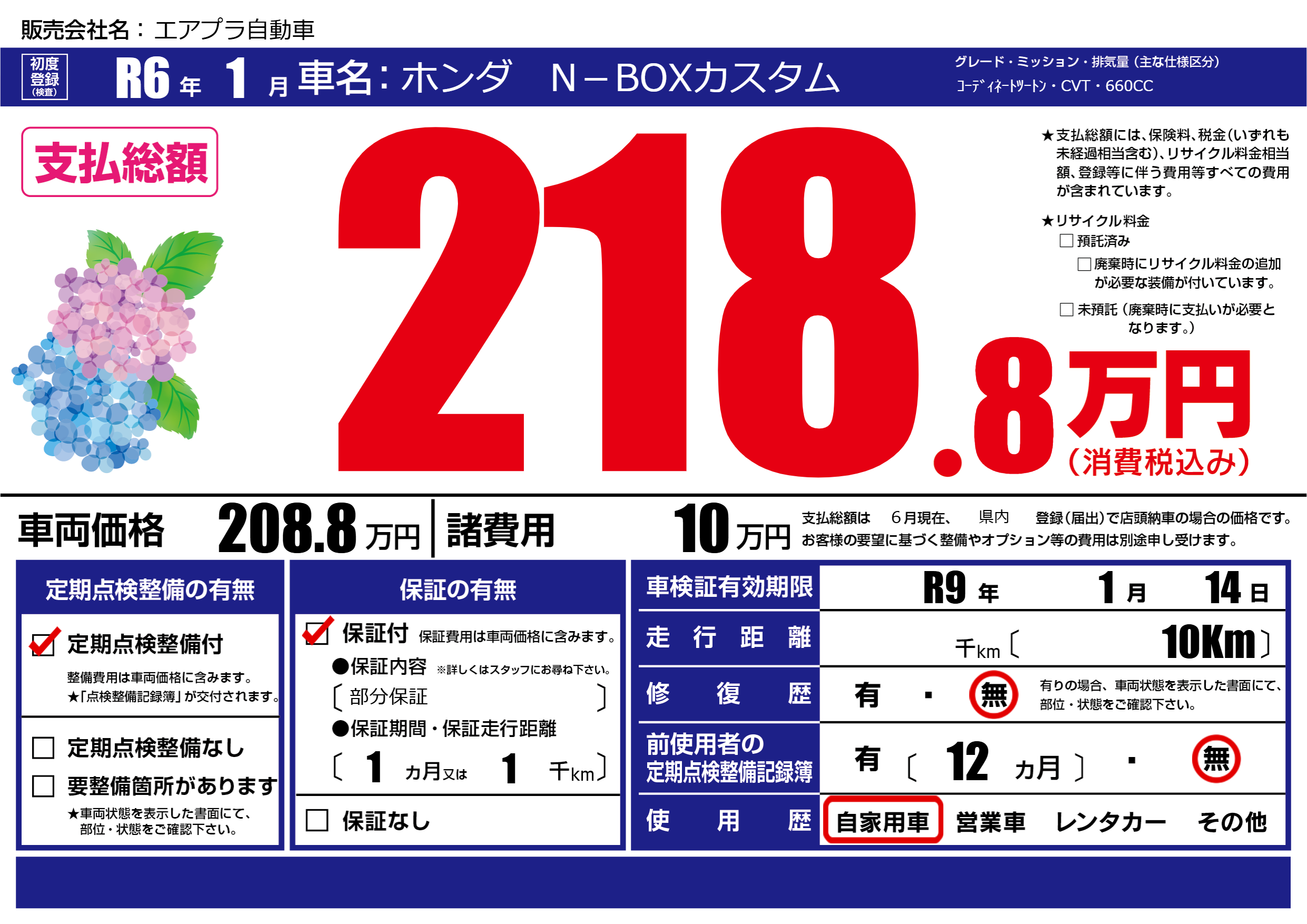 | 走行キロ | - | 初年度登録 | R6年1月 |