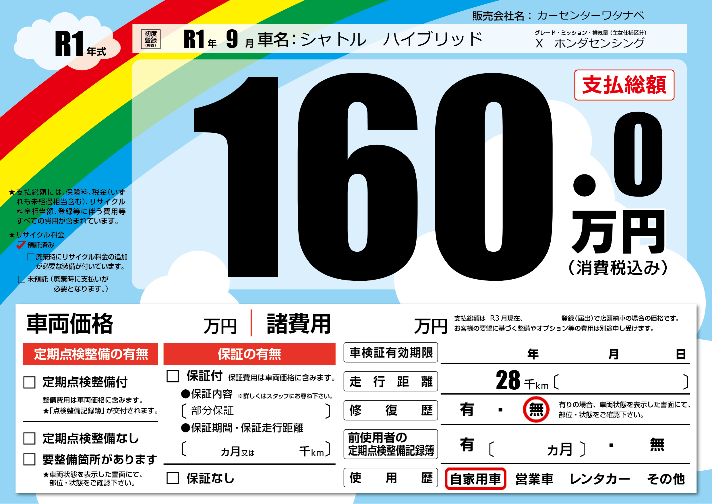 | 走行キロ | 2.8万km | 初年度登録 | R1年9月 |