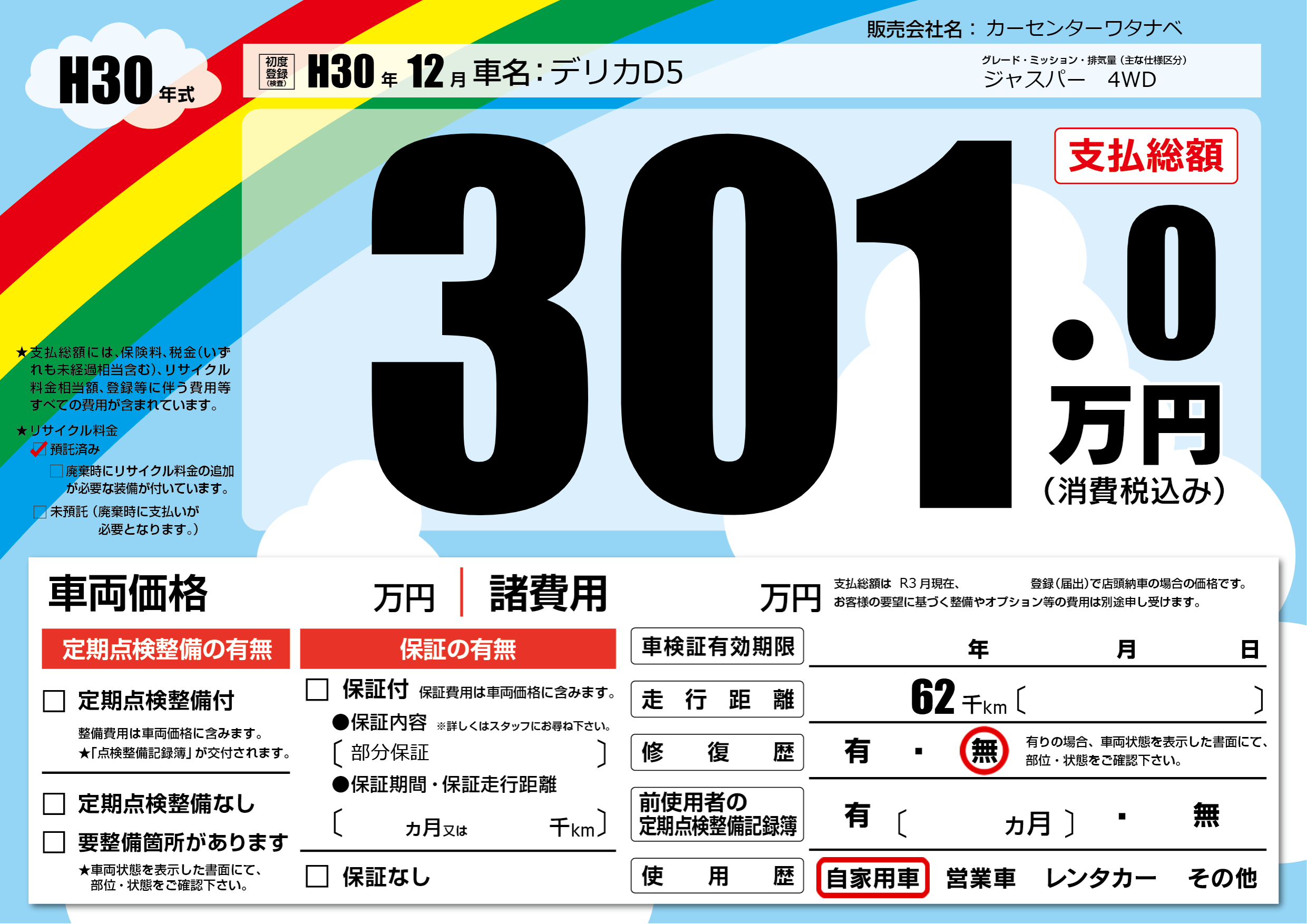| 車名 | デリカD5 | グレード ミッション 排気量 |