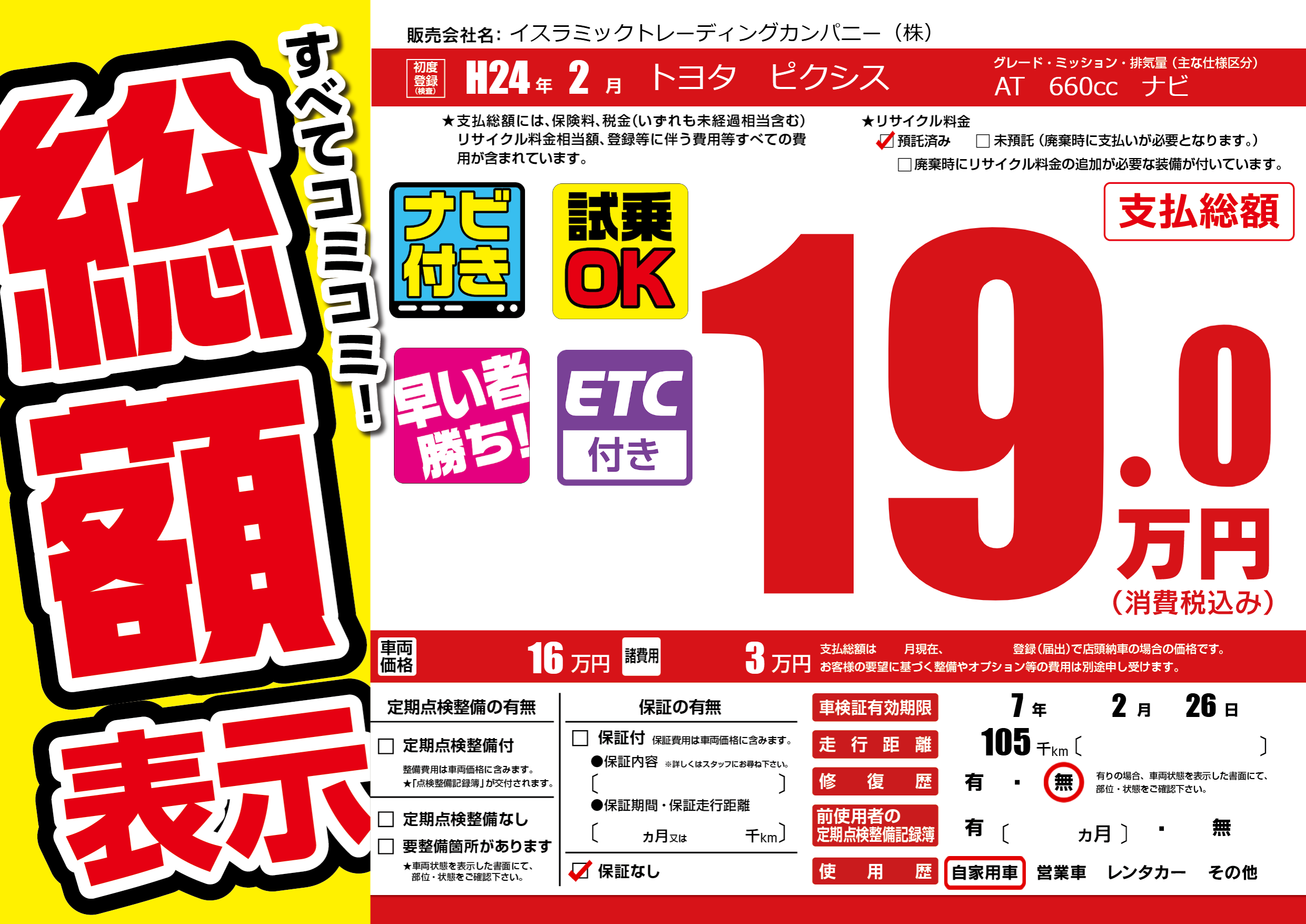 なし | 車検制限 | 7年2月26月 |
