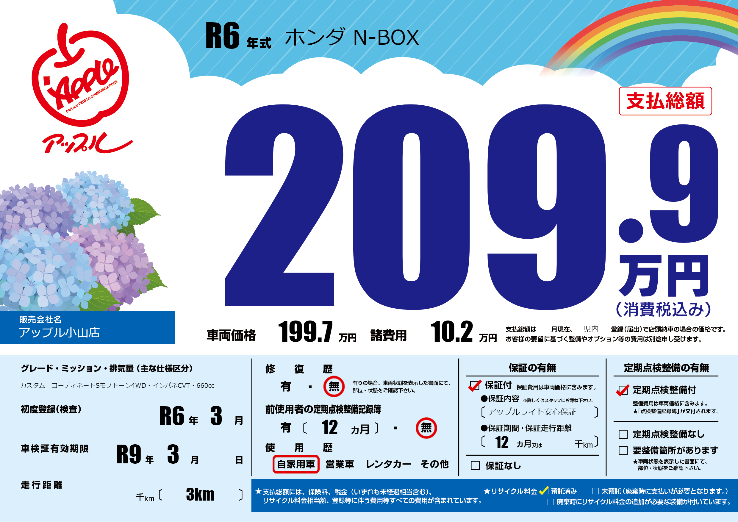 保証付き 保証内容(アップルライト安心保証) 12ヶ月または千km |