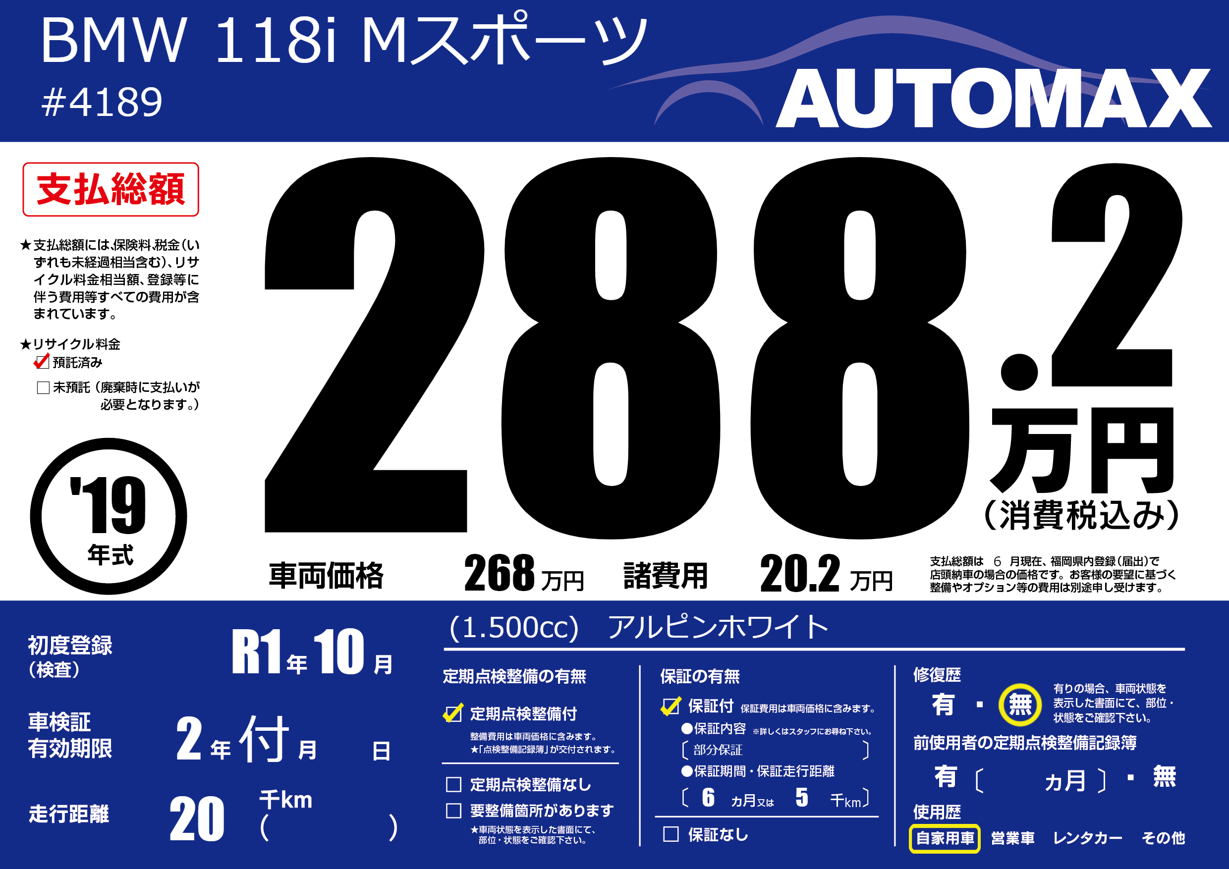 保証付き 保証内容(部分保証) 6ヶ月または(5)千kmまで |