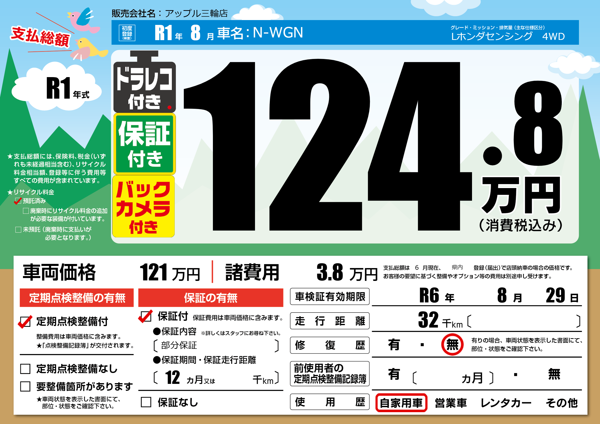 なし | 車検制限 | R6年8月29月 |