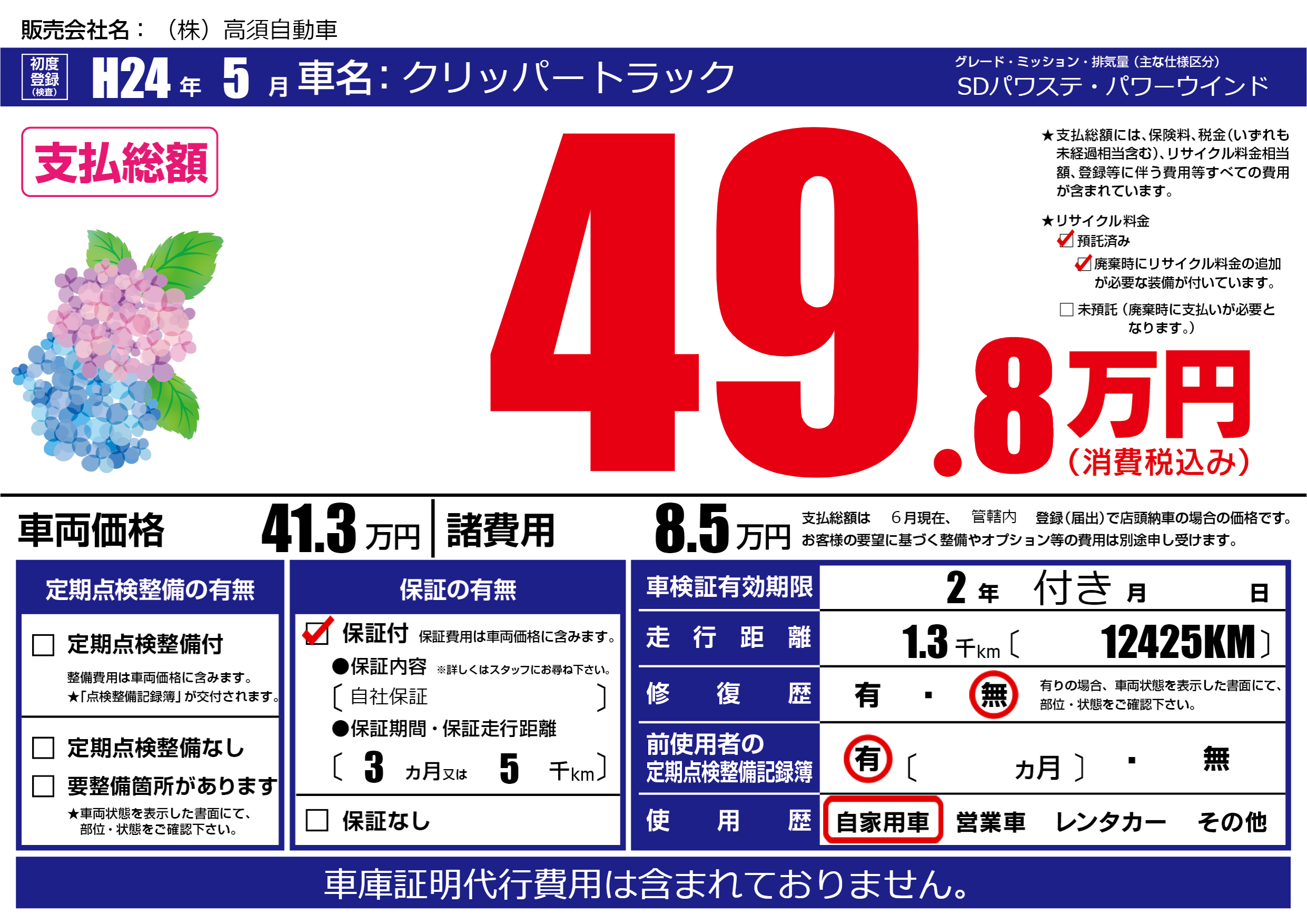 保証付き 保証内容(自社保証) 3ヶ月または(5)千kmまで |