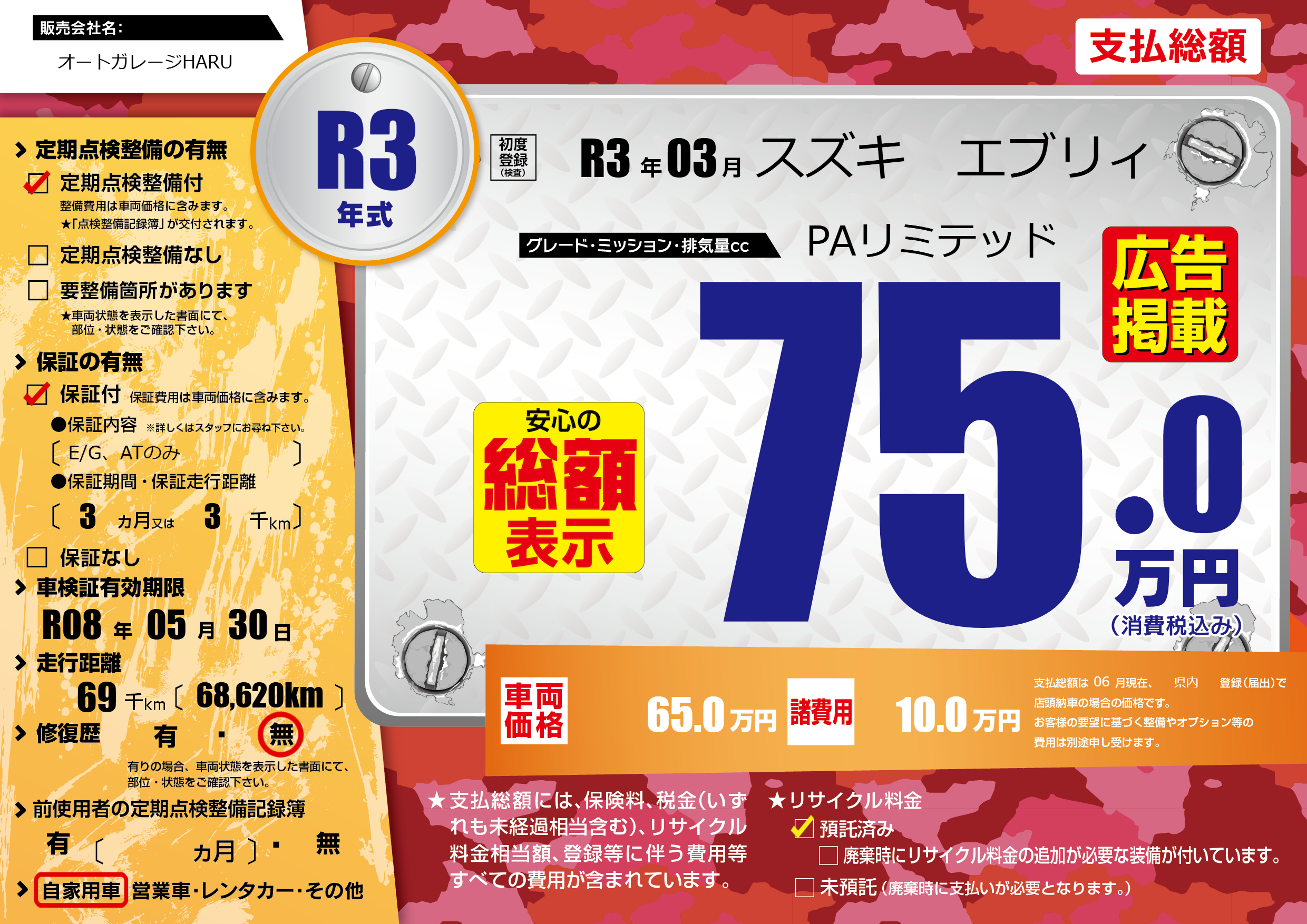 なし | 車検制限 | R08年05月30月 |