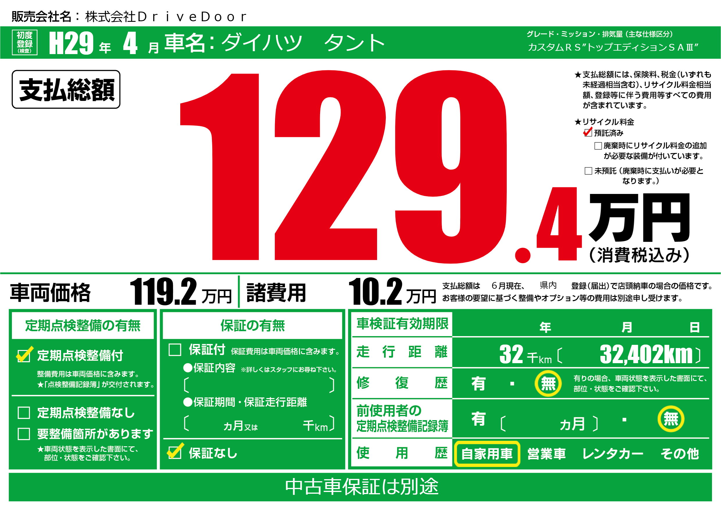 | 定期点検整備 | 定期点検整備あり | ||