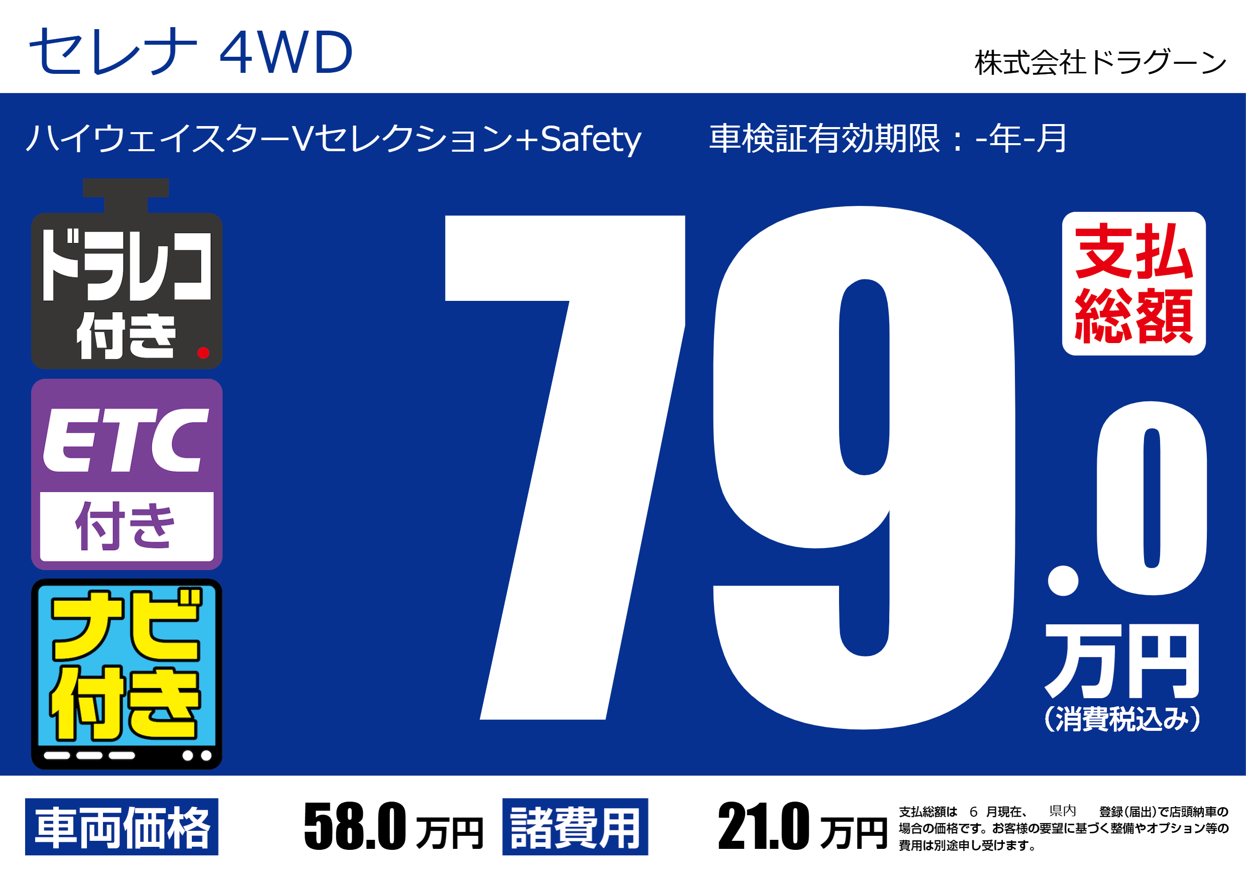 | 車名 | セレナ 4WD | グレード ミッション 排気量 |