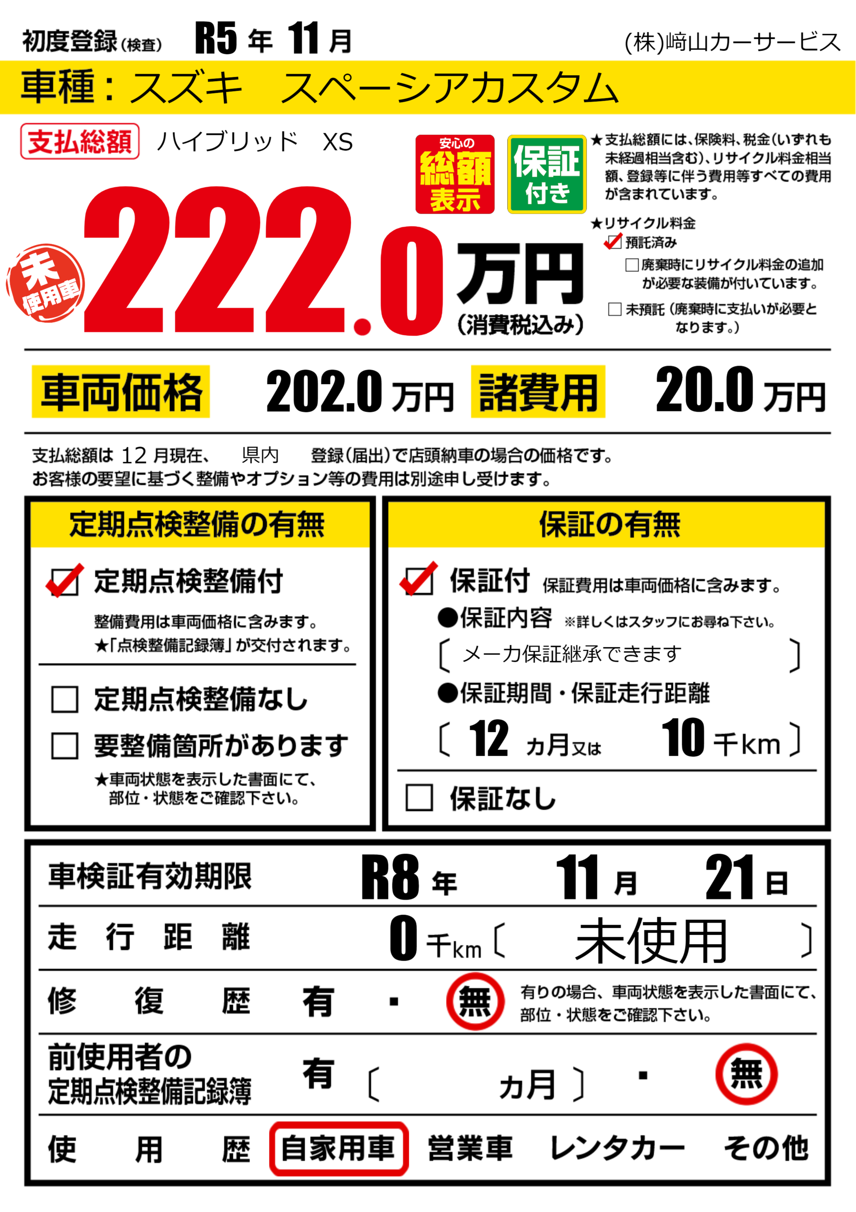 | 走行キロ | - | 初年度登録 | R5年11月 |