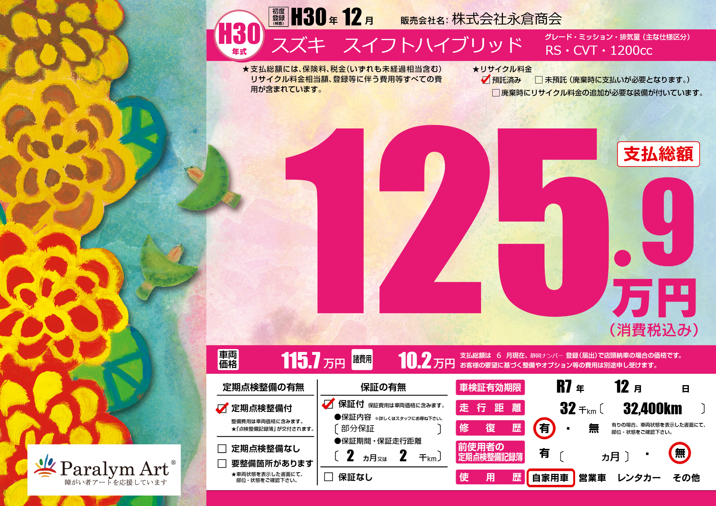 | 車名 | スズキ スイフトハイブリッド | グレード ミッション 排気量 |