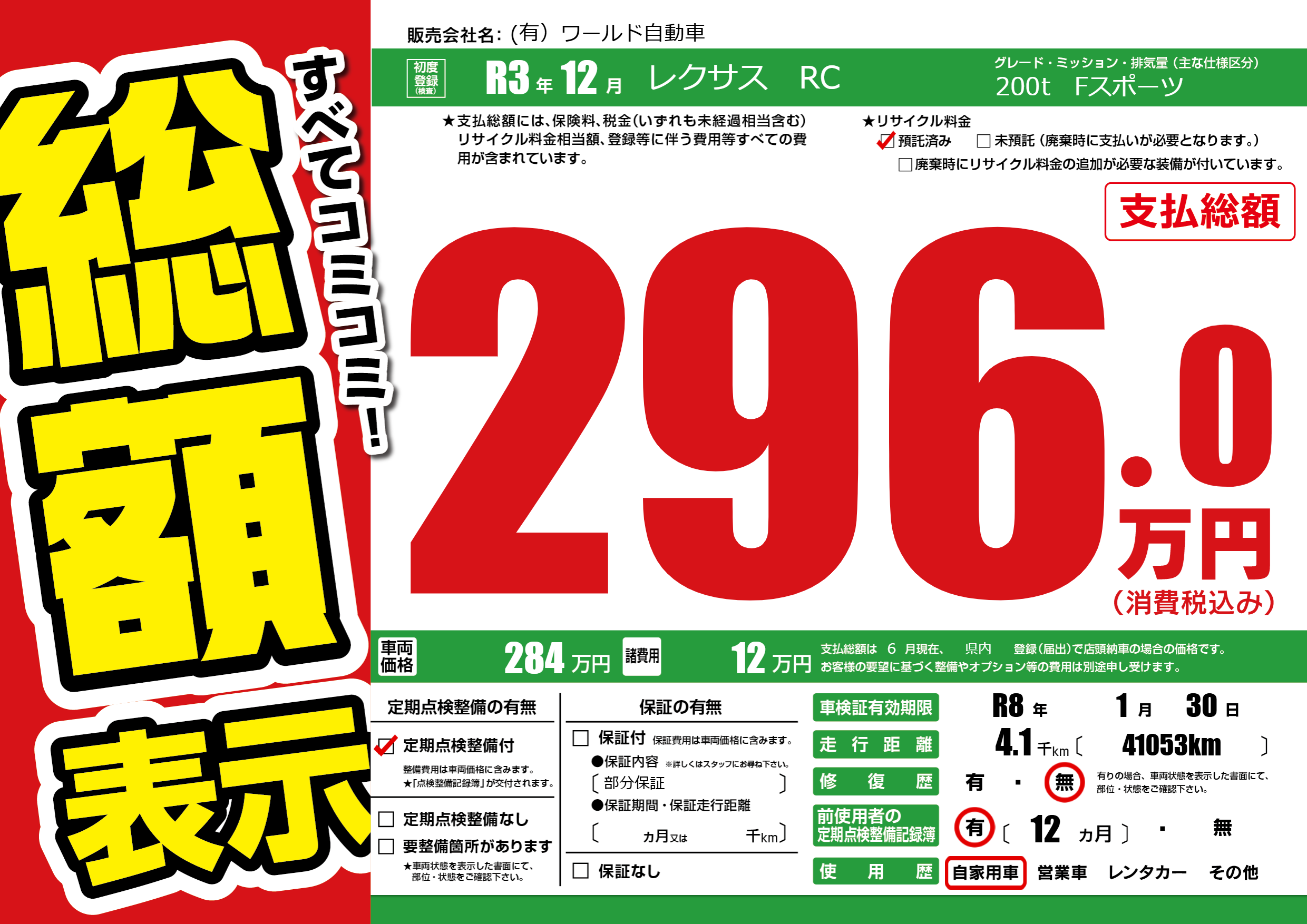 | 車検制限 | R8年 1月 30日 | ||