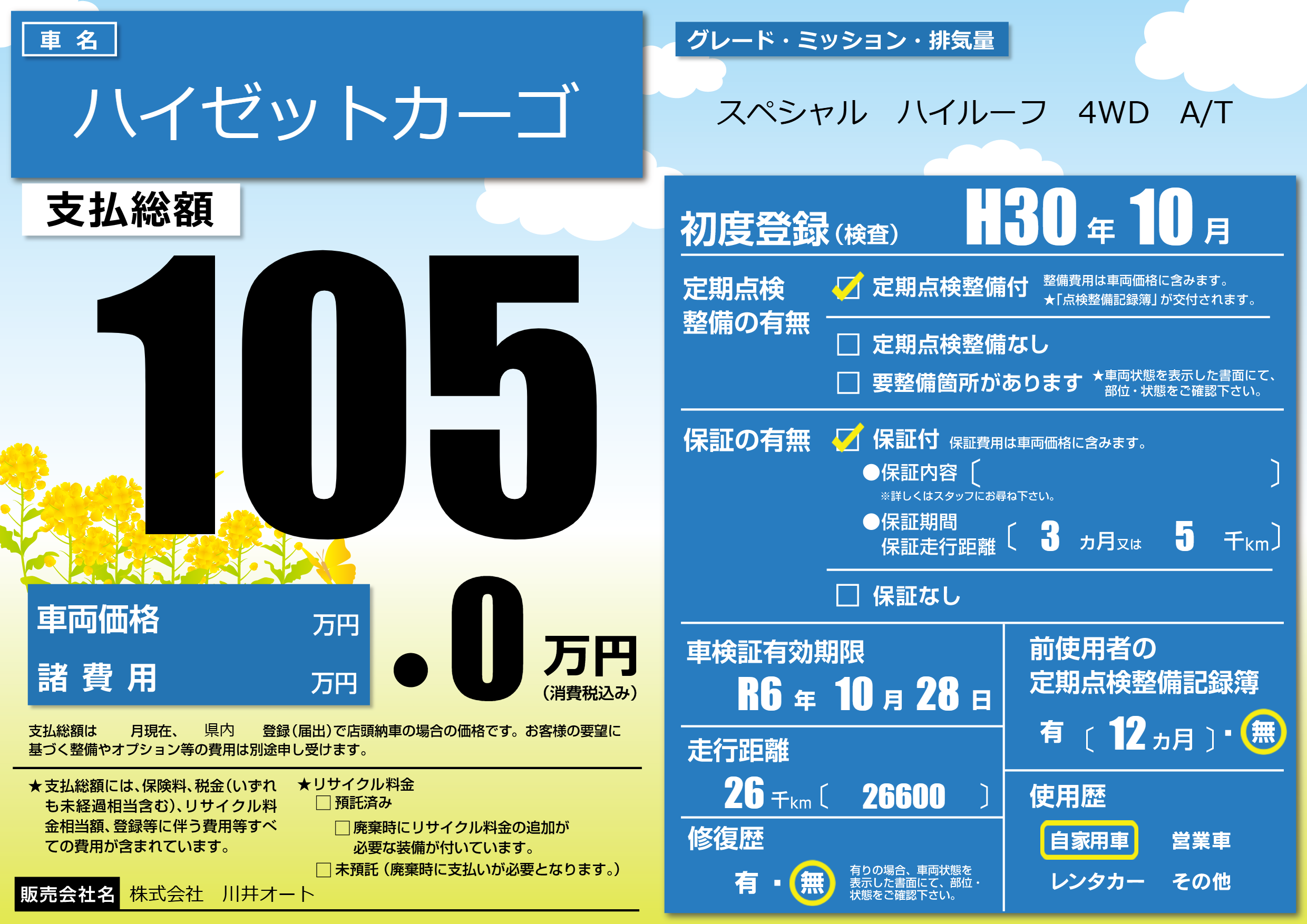 なし | 車検制限 | R6年10月28月 |