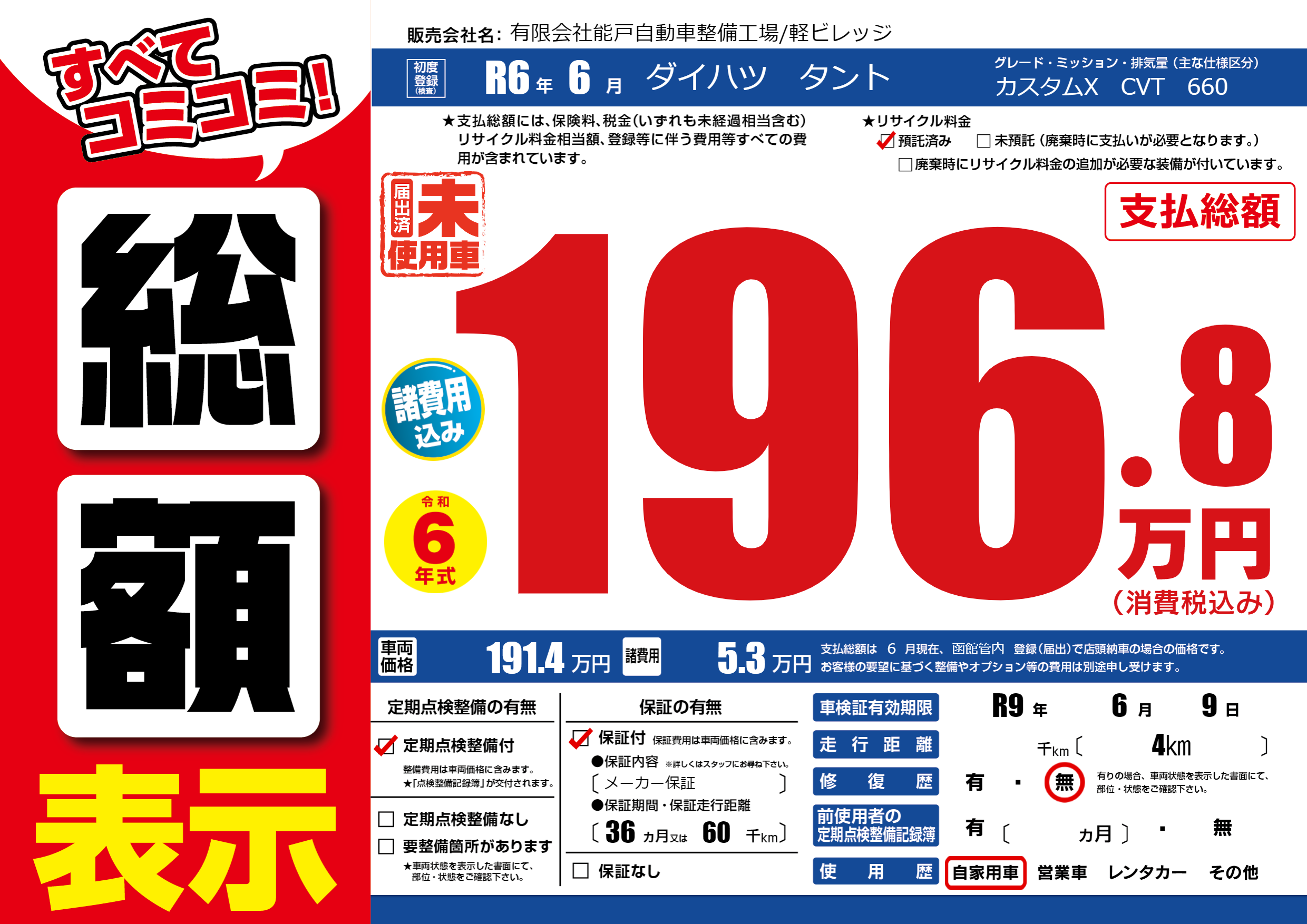 なし | 車検制限 | R9年6月9月 |