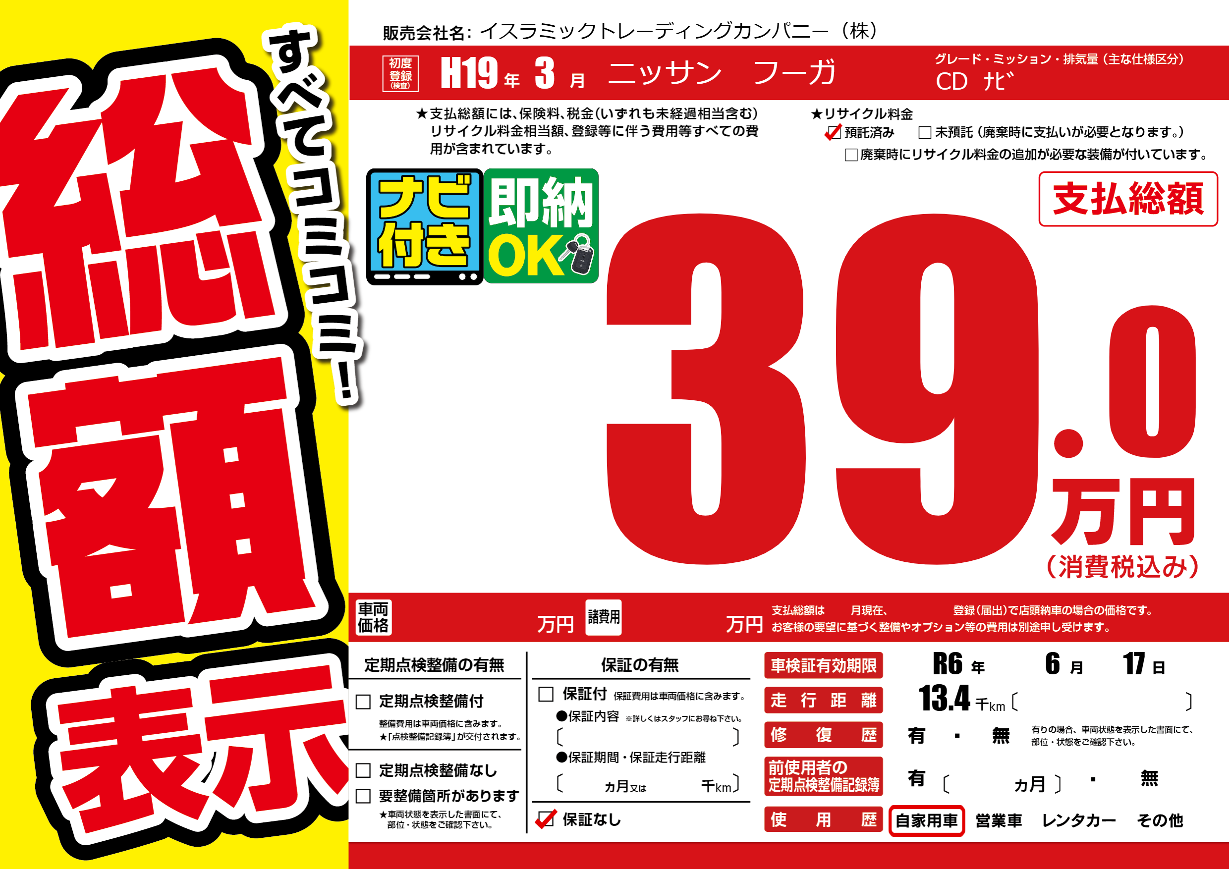 なし | 車検制限 | R6年6月17月 |