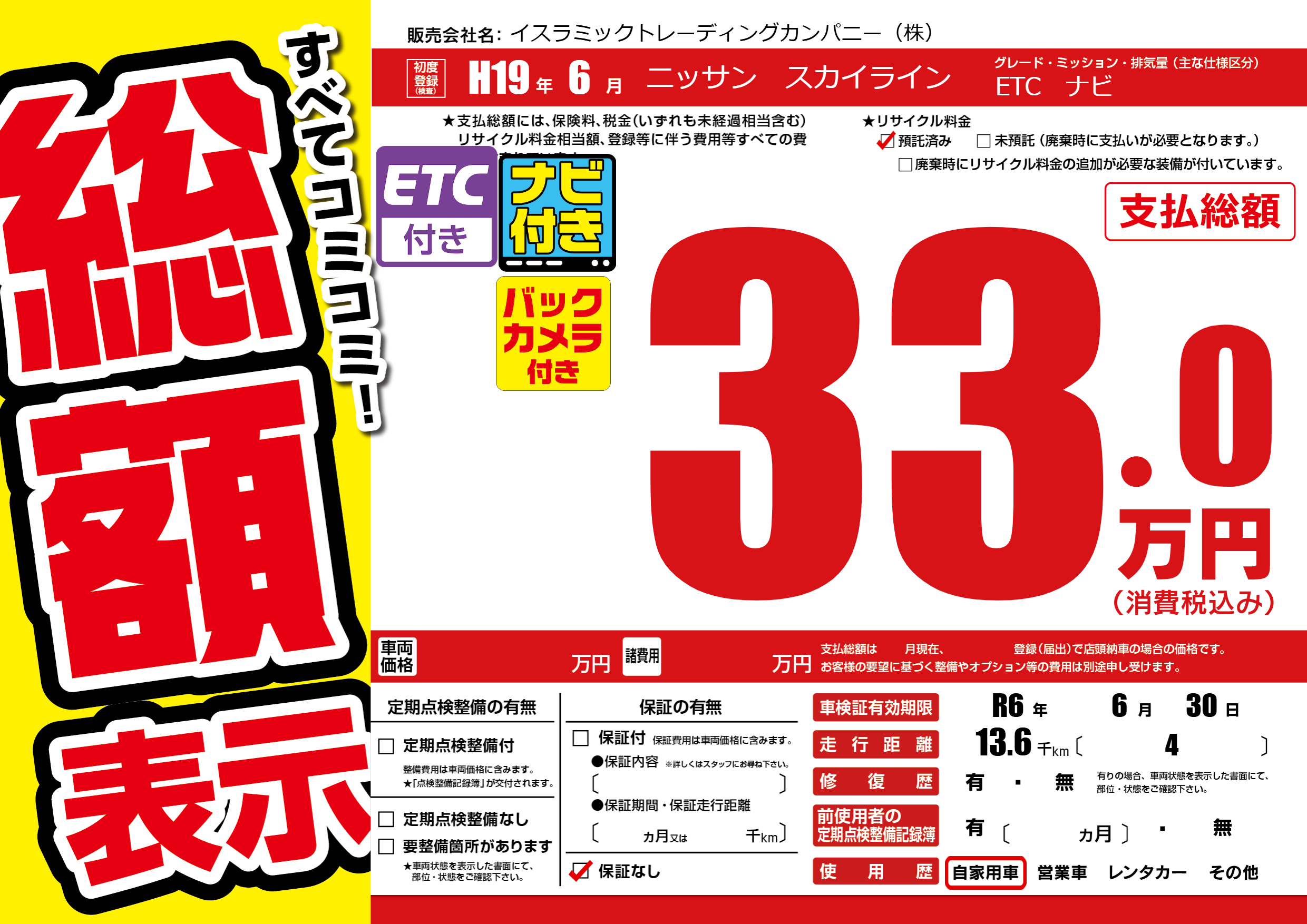 なし | 車検制限 | R6年6月30月 |