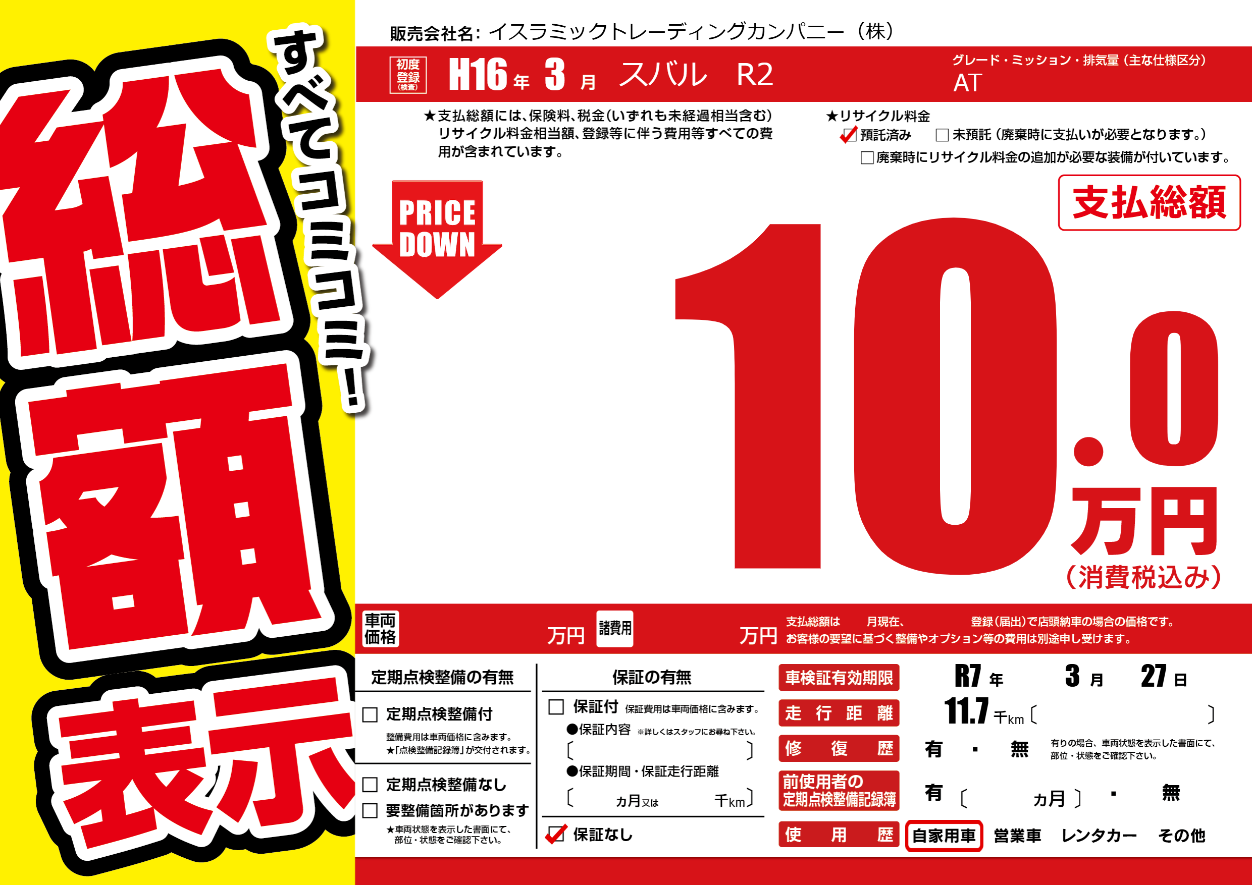 | 車検制限 | R7年 3月 27日 | ||