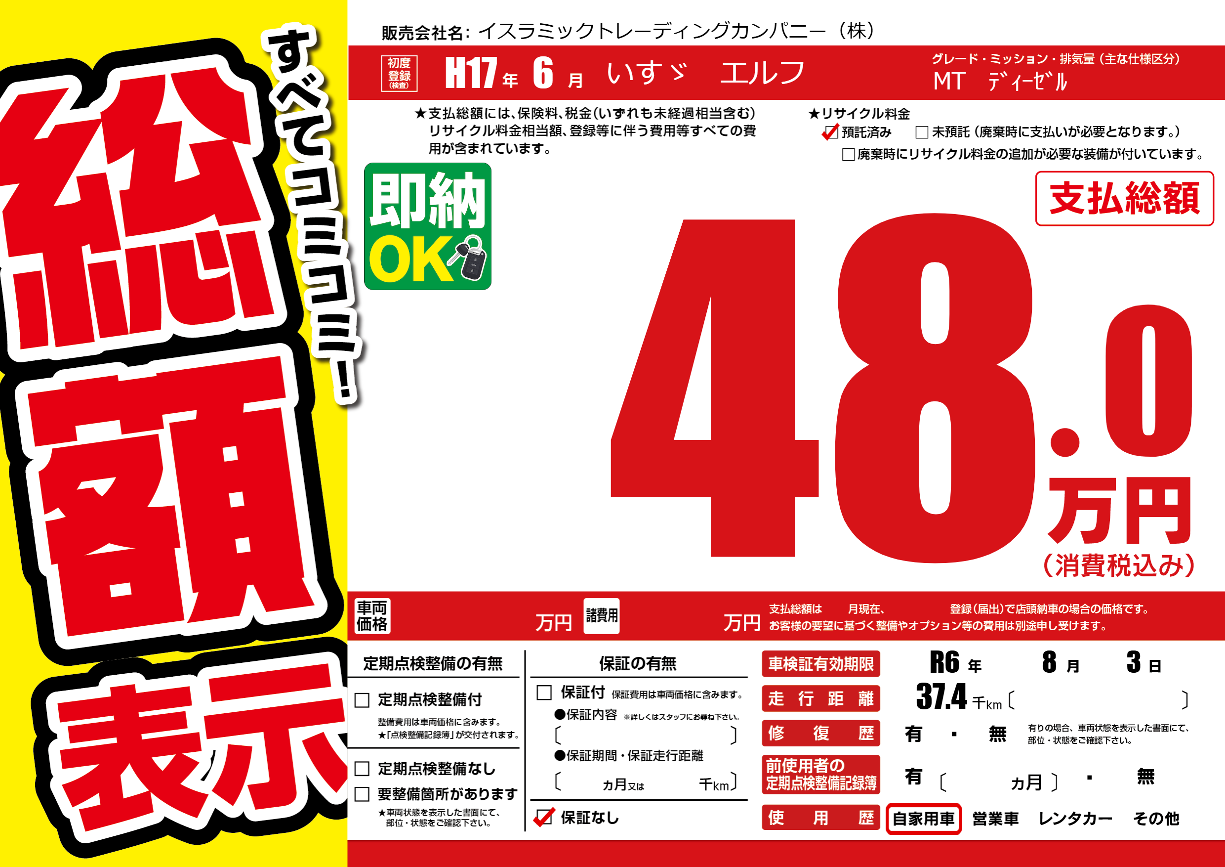 なし | 車検制限 | R6年8月3月 |