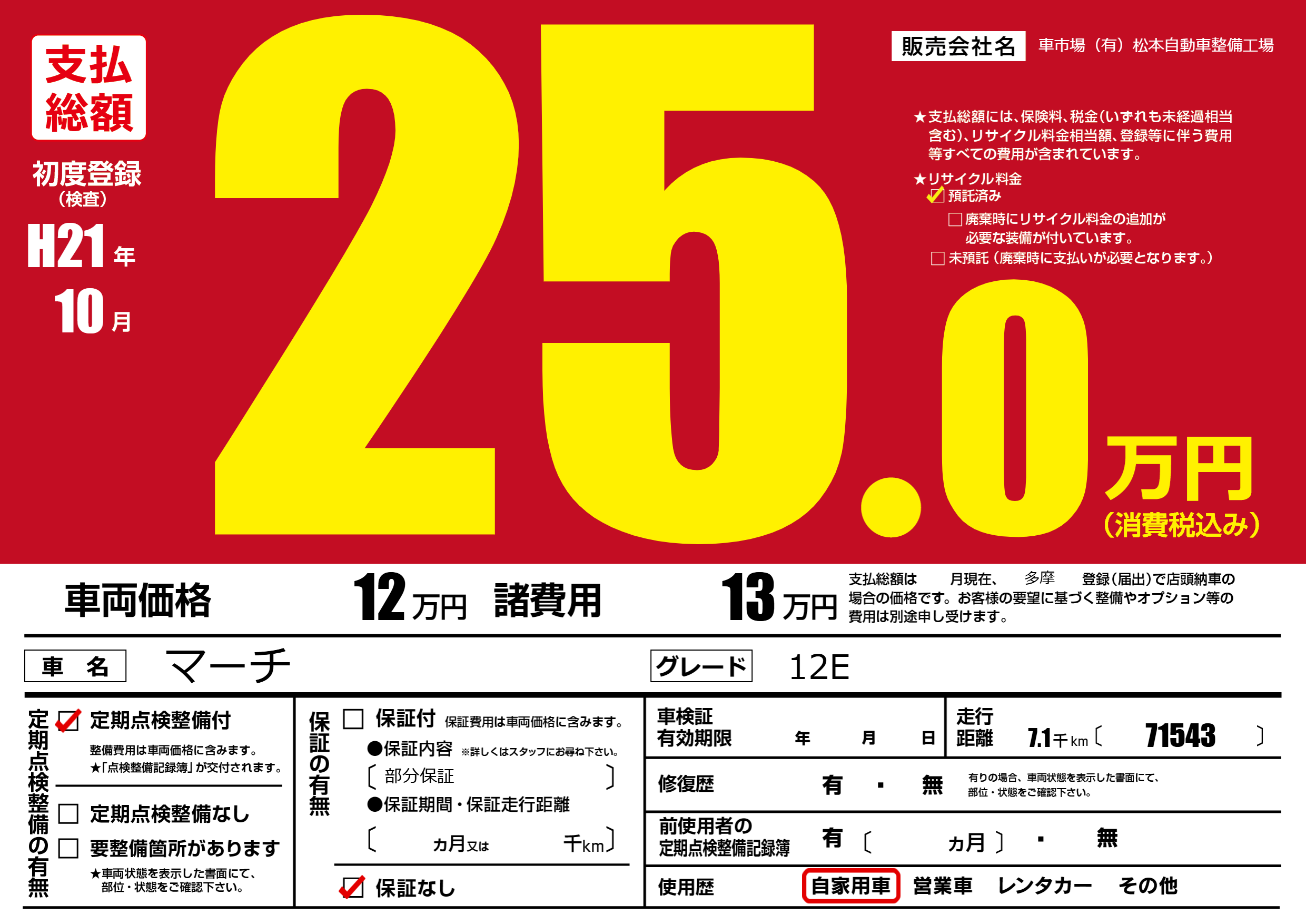 | 車名 | マーチ | グレード ミッション 排気量 |