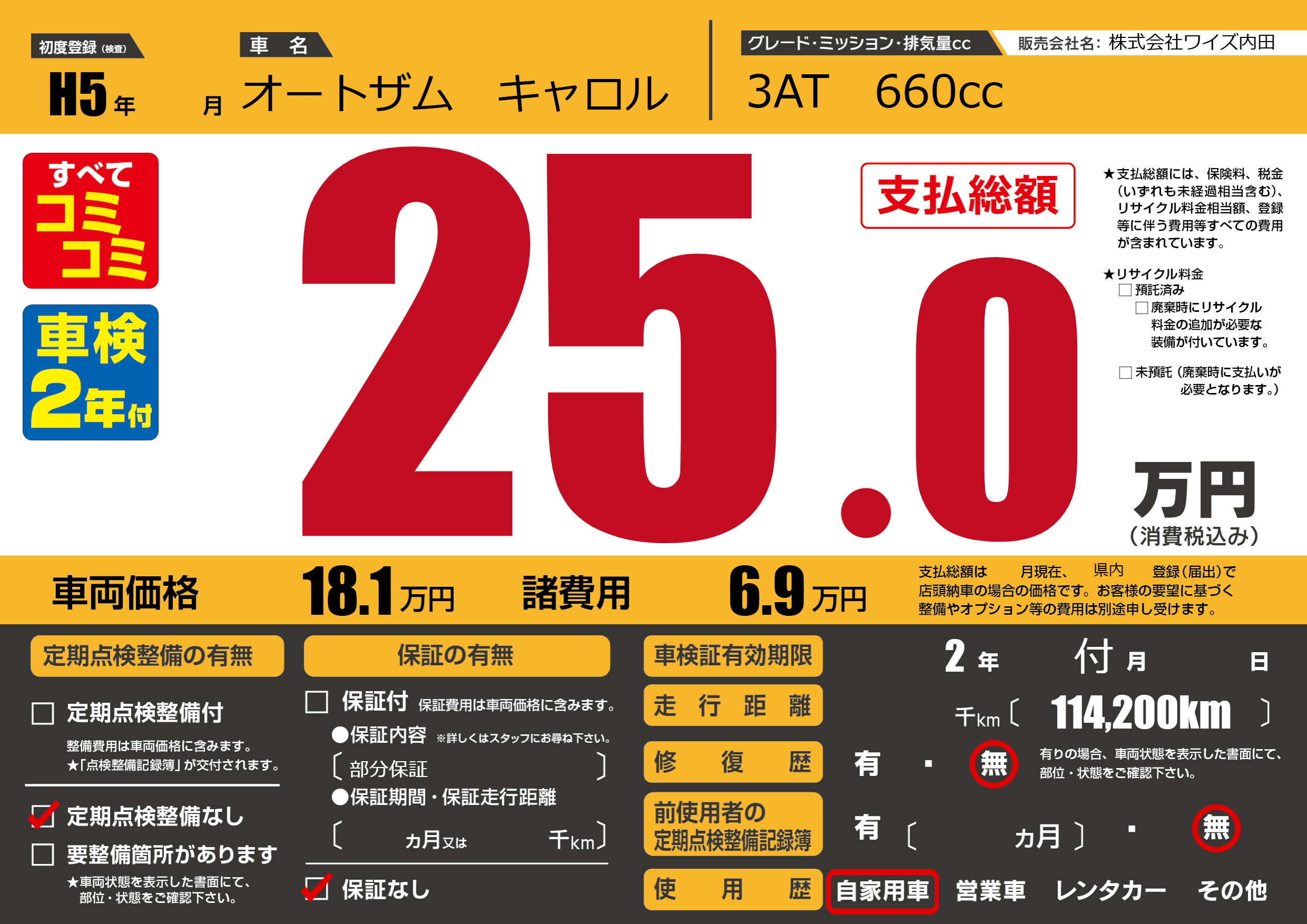 | 走行キロ | - | 初年度登録 | H5年---月 |
