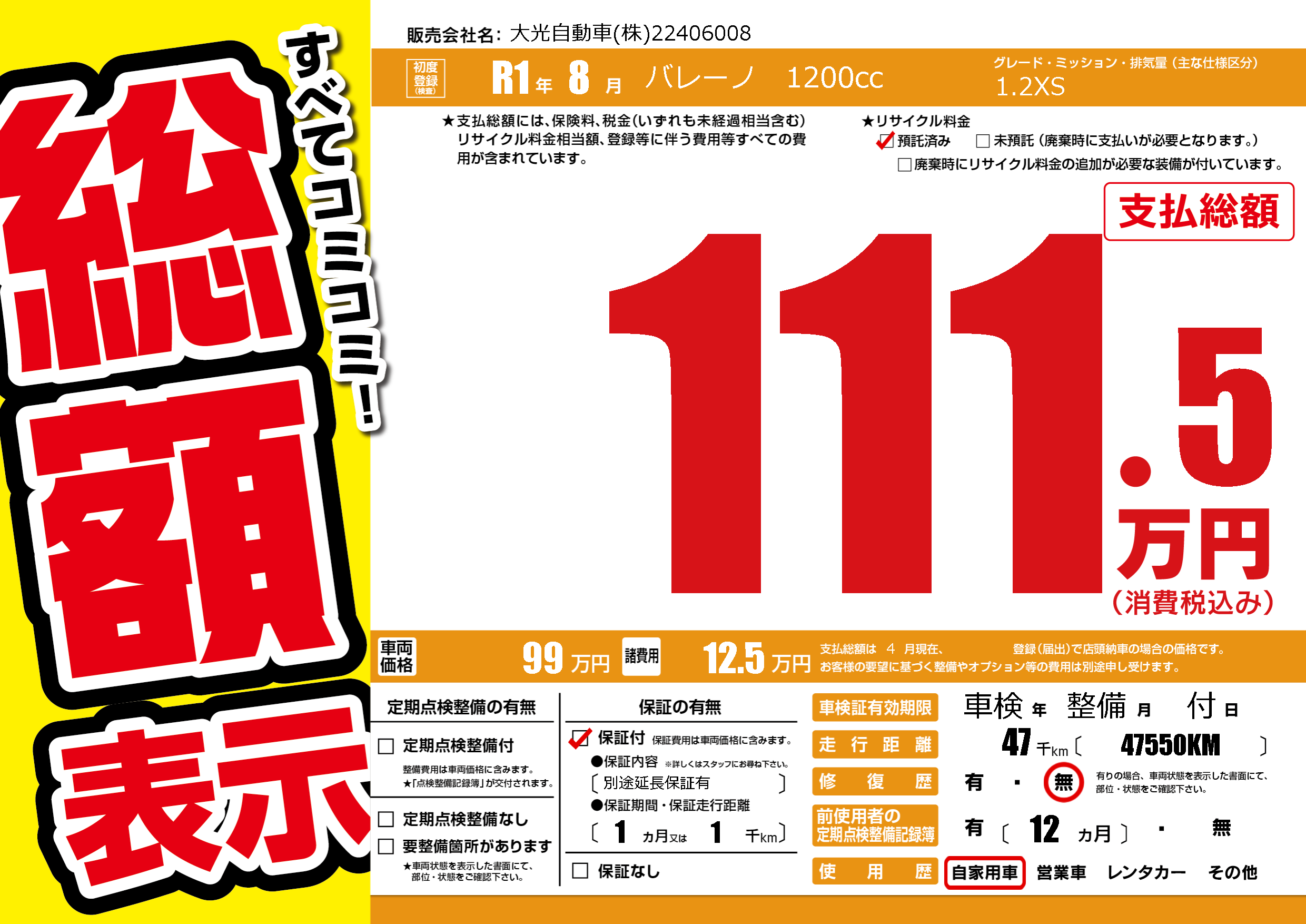 | 走行キロ | 4.7万km | ||