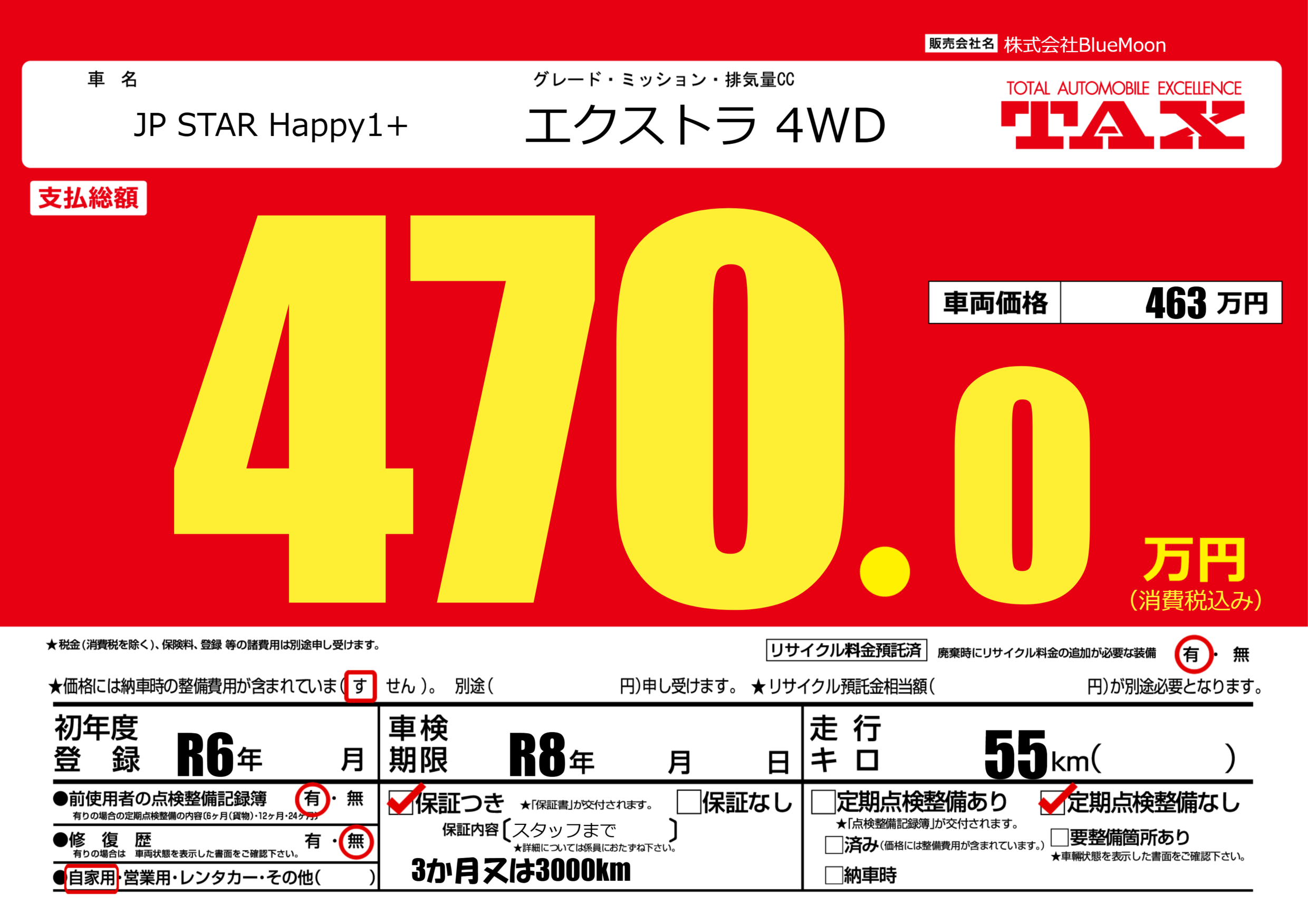 | 車名 | JP STAR Happy1+ | グレード ミッション 排気量 |