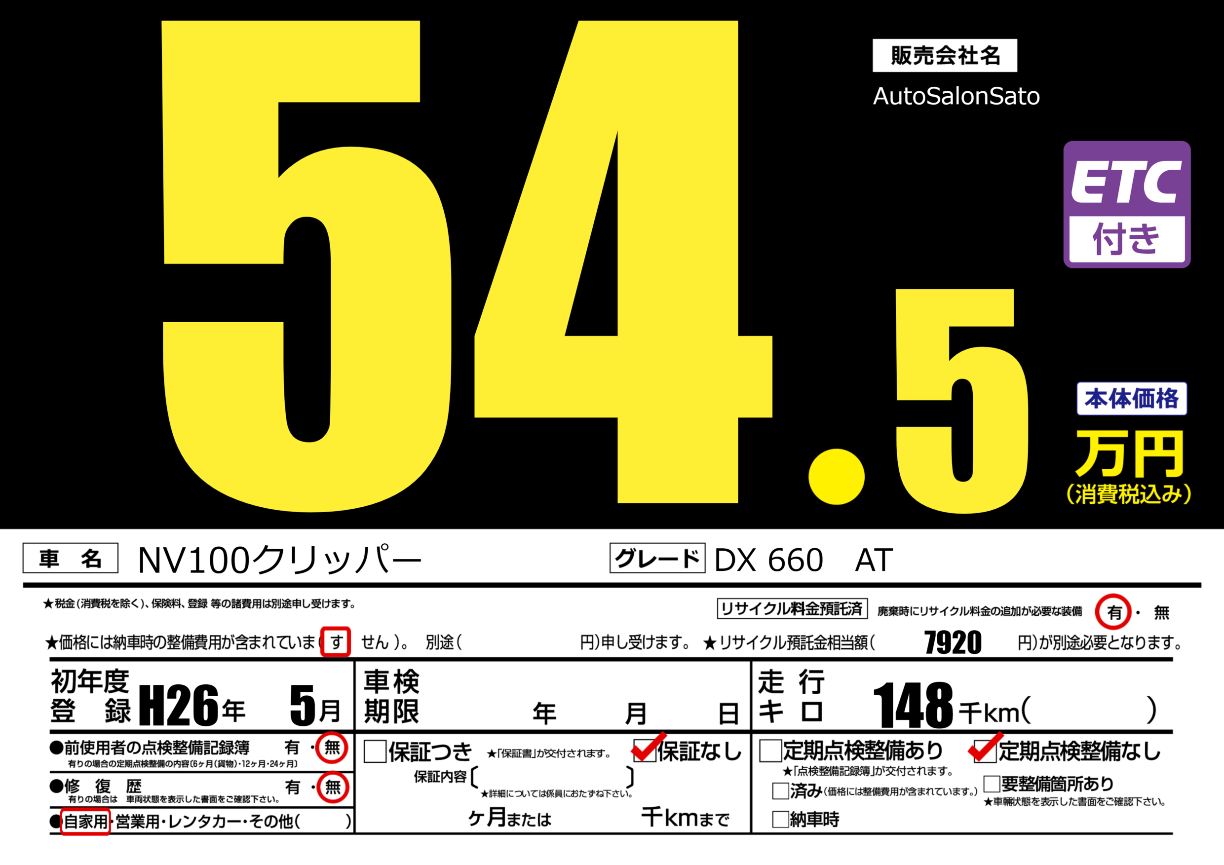 | 車名 | NV100クリッパー | グレード ミッション 排気量 |