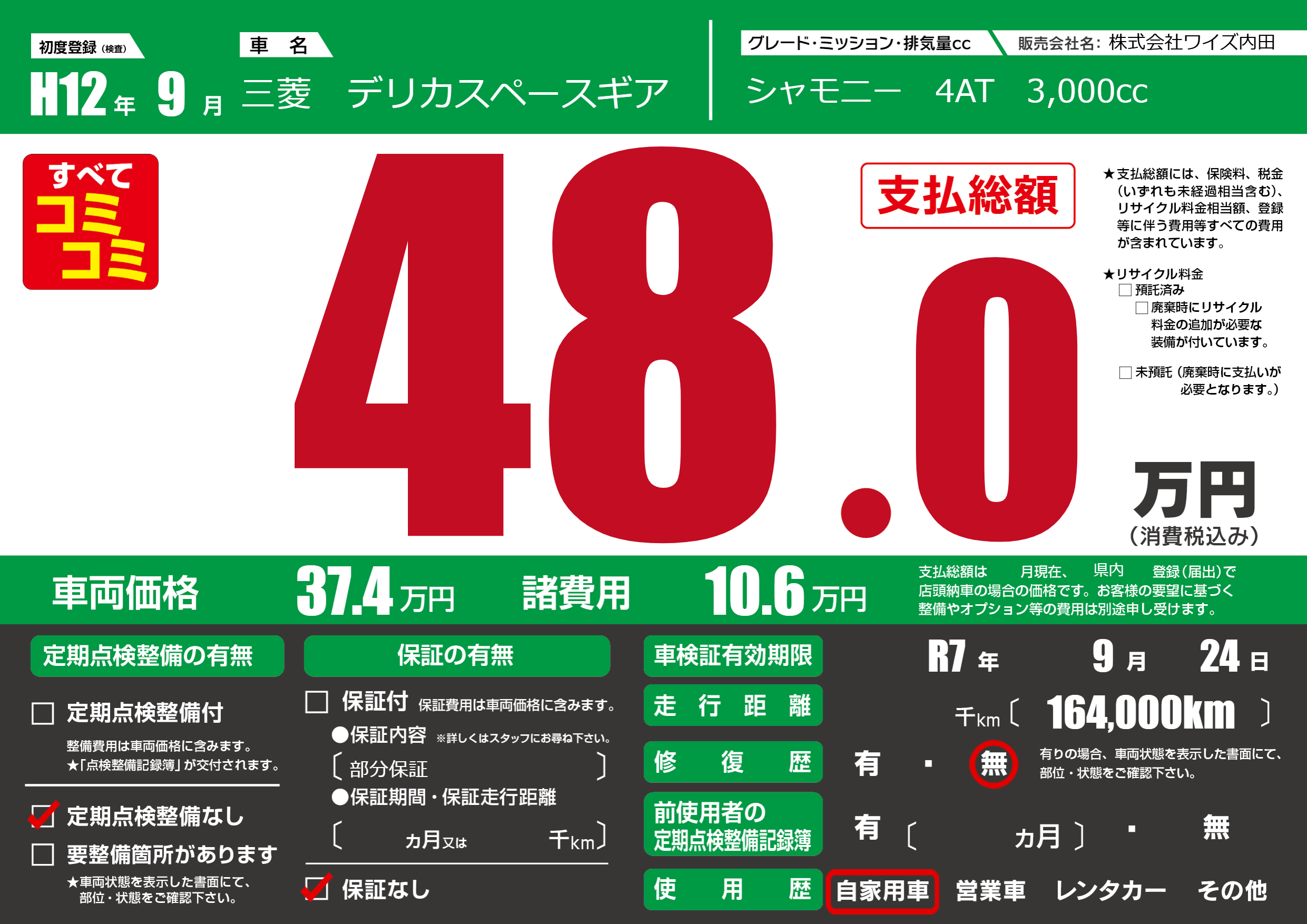 保証なし 保証内容(部分保証) ---ヶ月または()千kmまで |