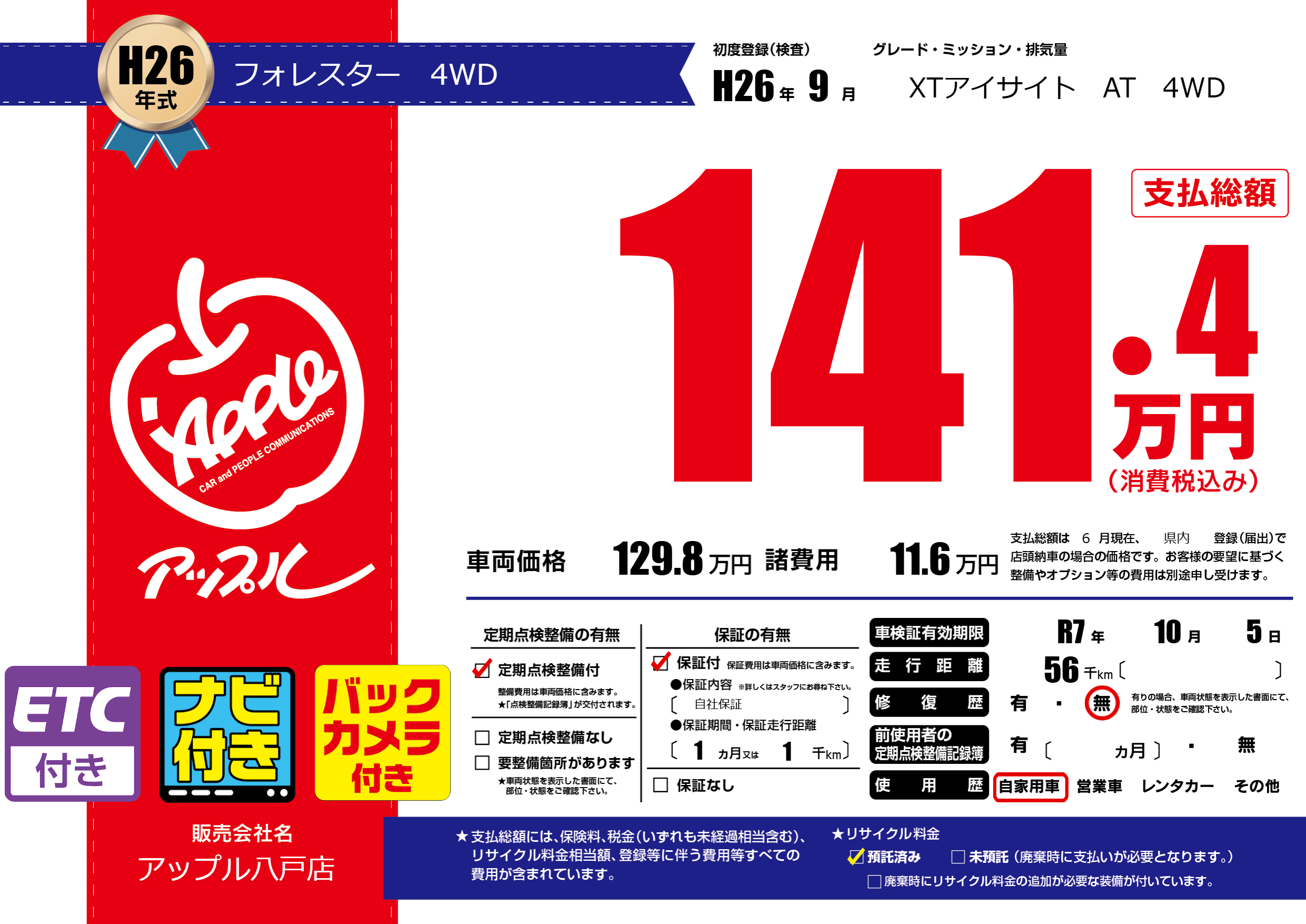 | 車名 | フォレスター 4WD | グレード ミッション 排気量 |
