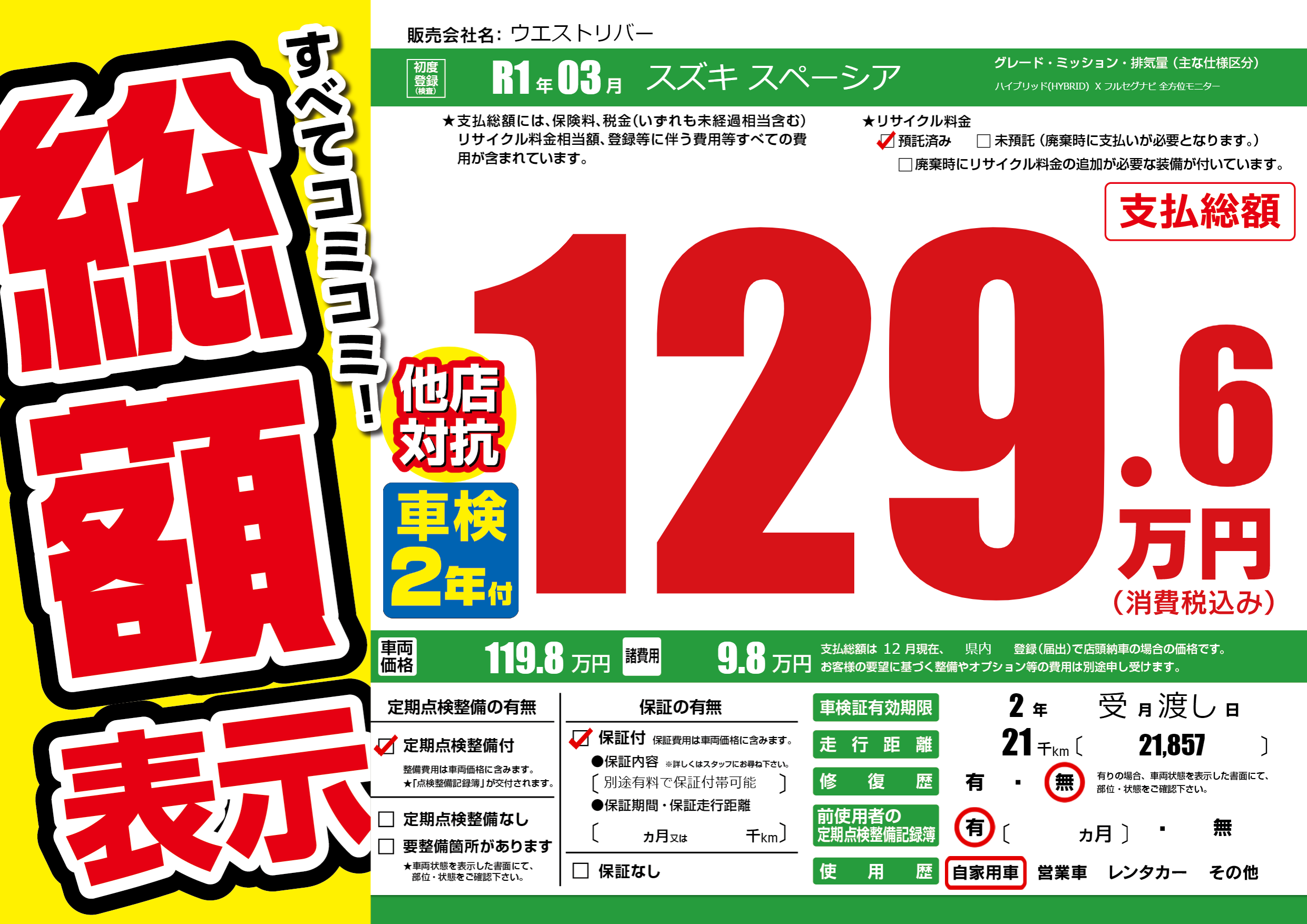 なし | 車検制限 | 2年受月渡し月 |