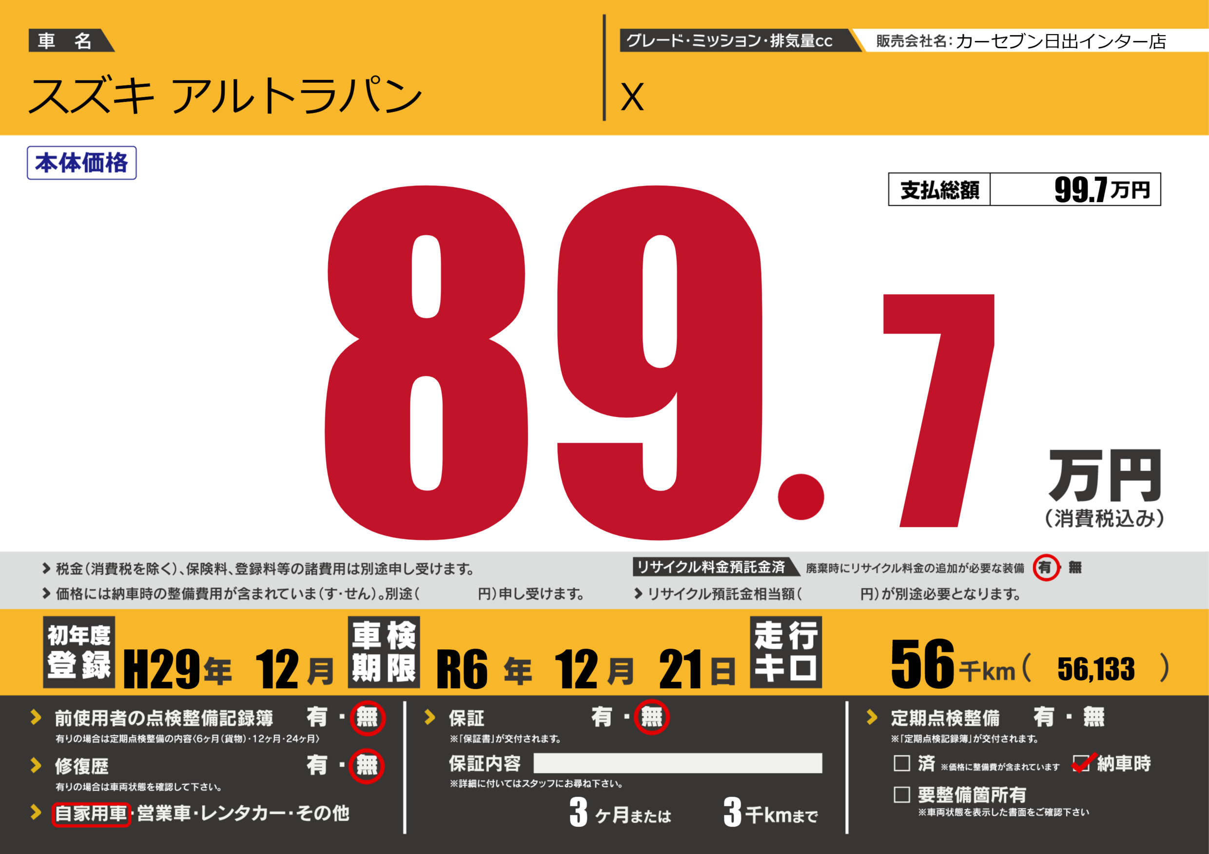 | 定期点検整備 | 納車時あり | ||