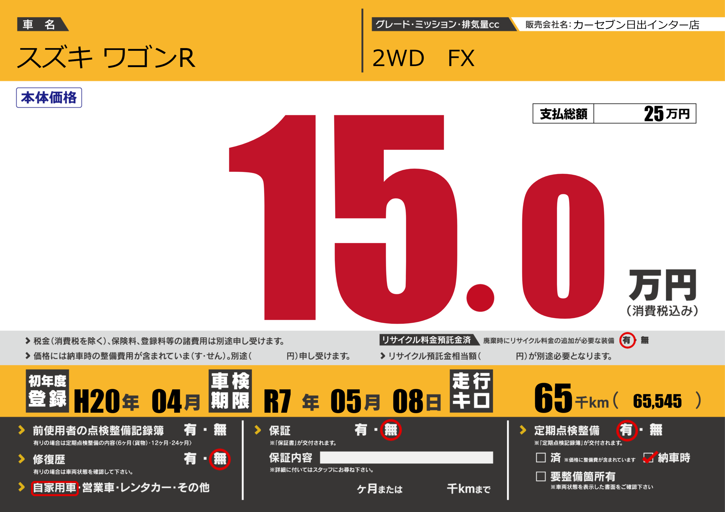 | 車検制限 | R7年 05月 08日 | ||