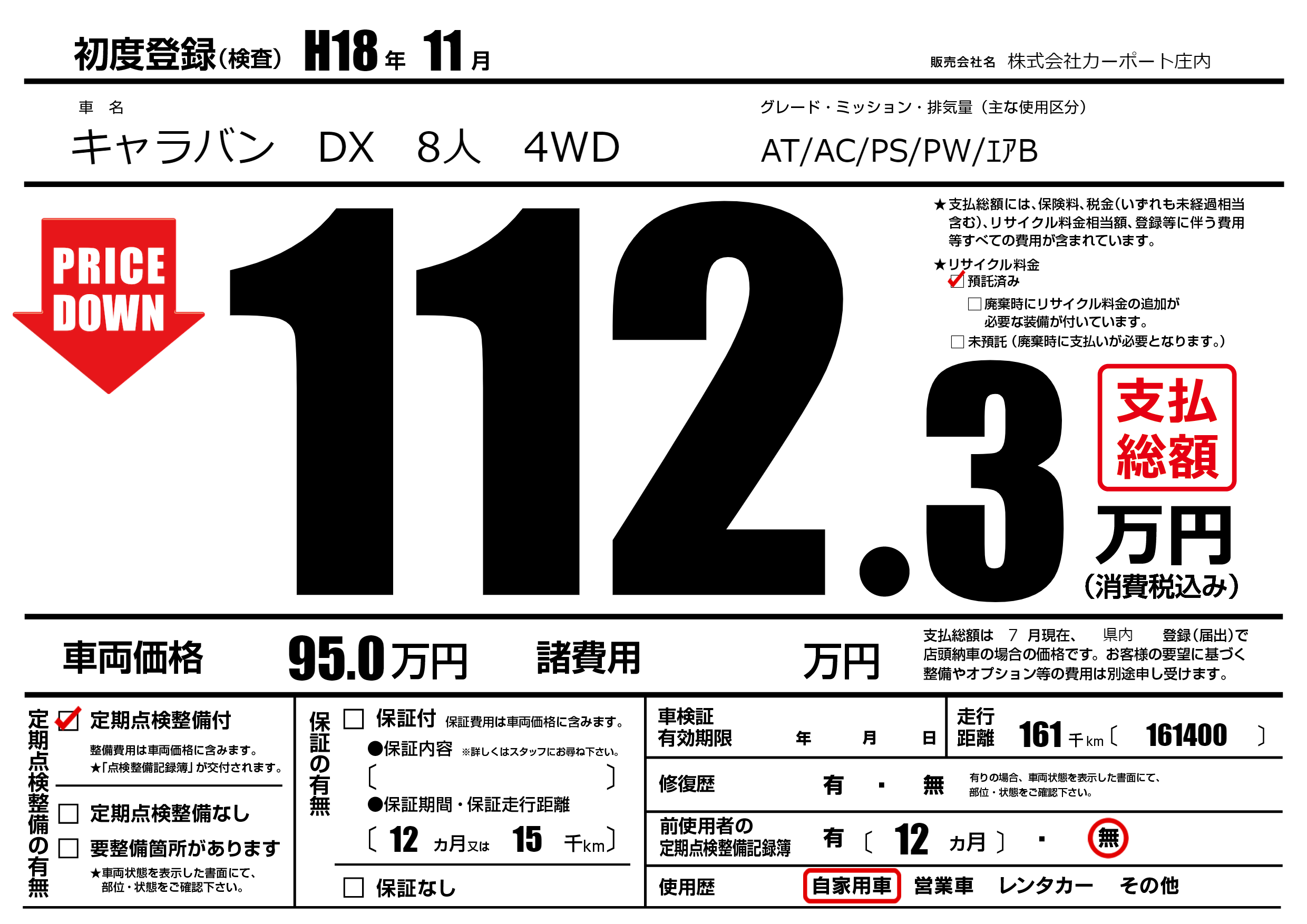 | 定期点検整備 | 定期点検整備あり | ||