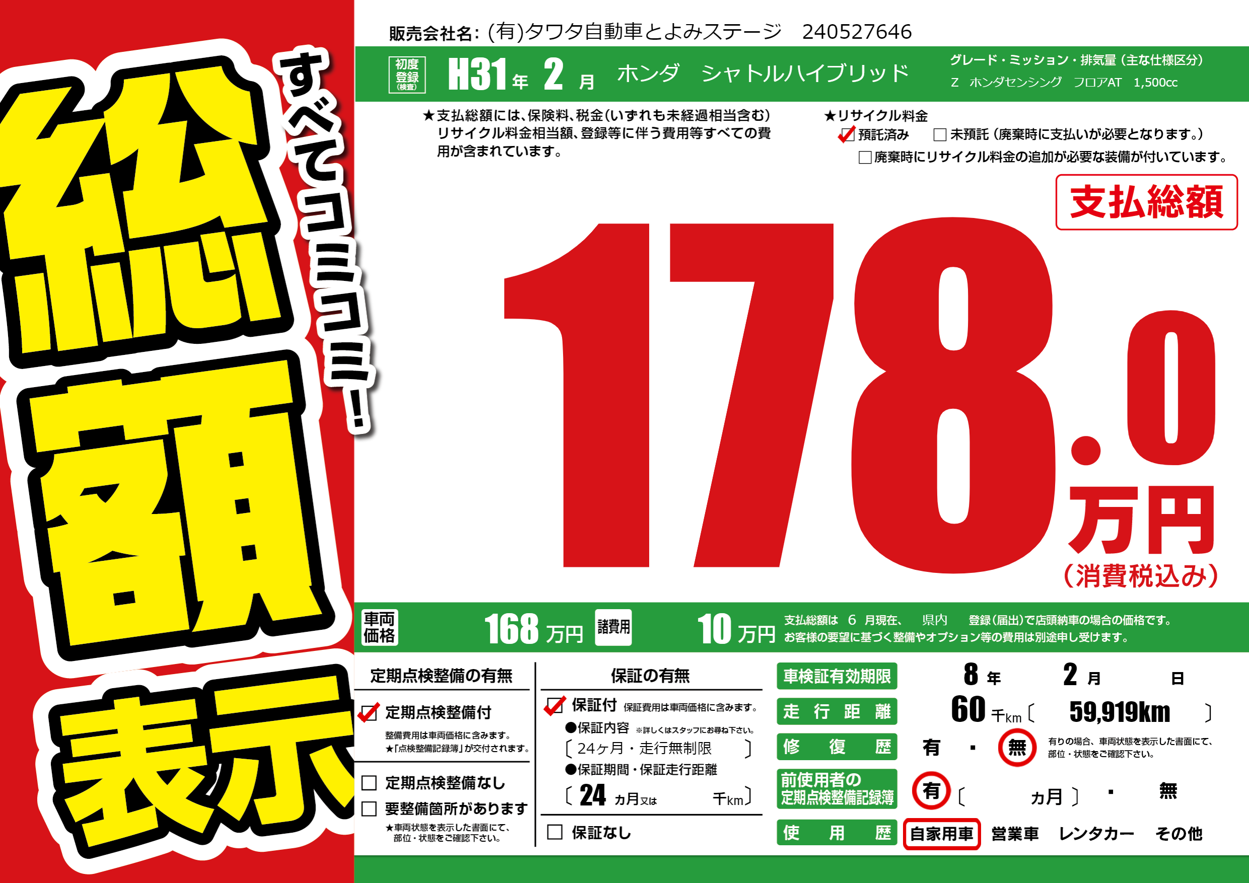 Z ホンダセンシング フロアAT 1,500cc |