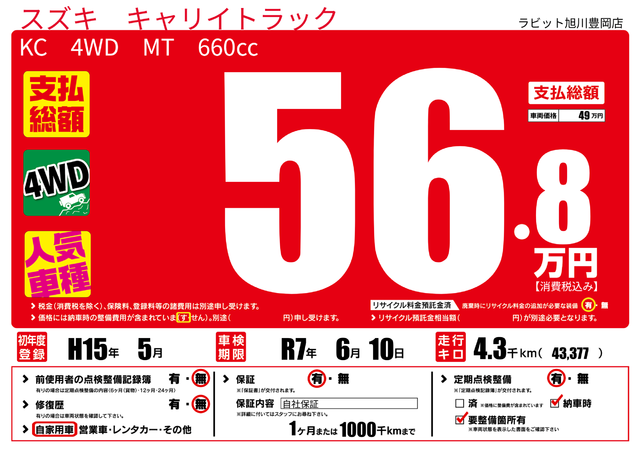 保証付き 保証内容(自社保証) 3ヶ月または(3)千kmまで |