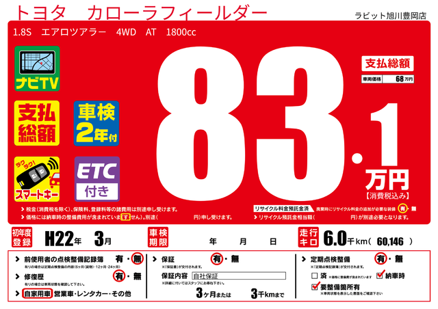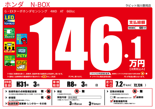 保証付き 保証内容(自社保証) 3ヶ月または3千km |