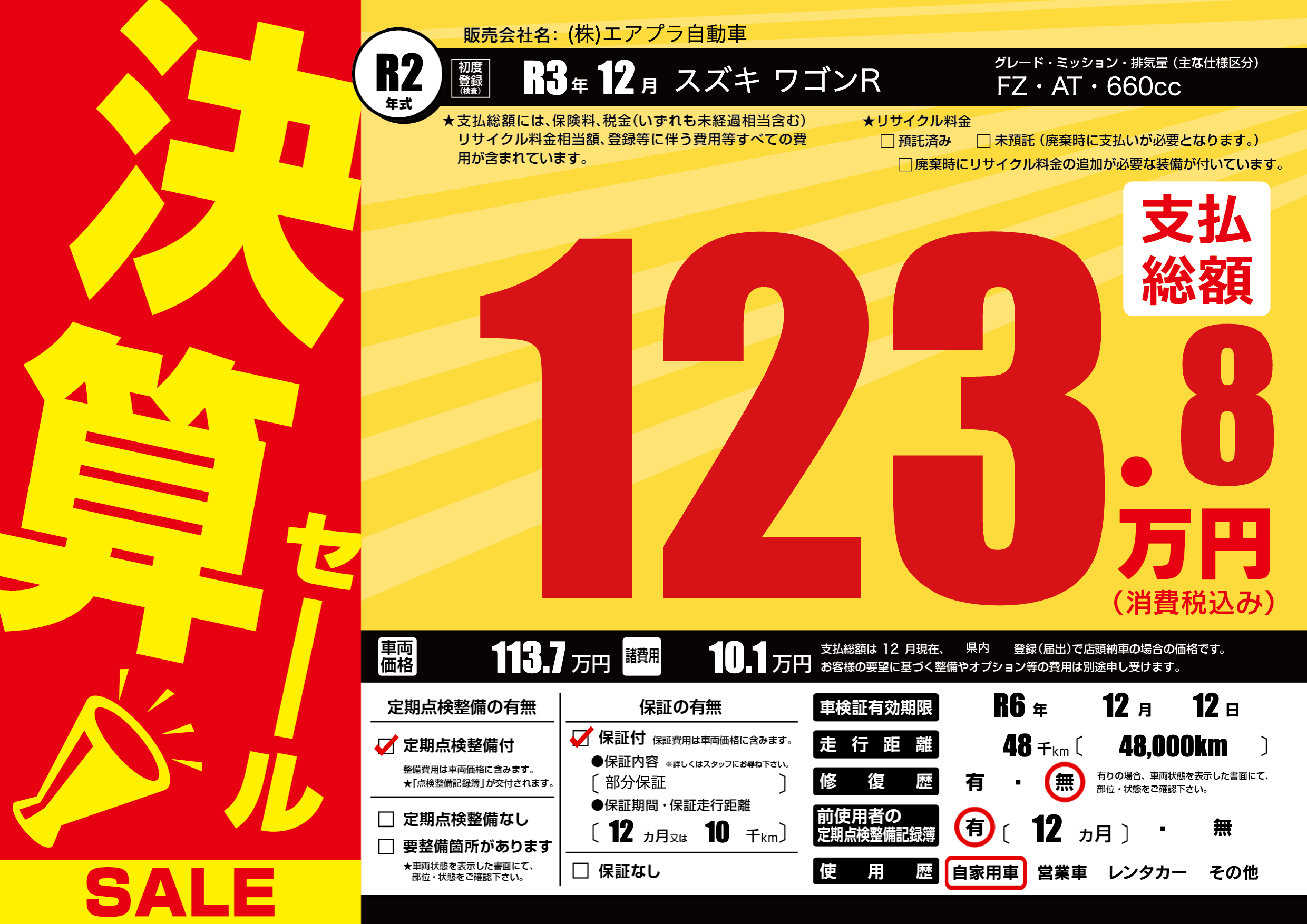 なし | 車検制限 | R6年12月12月 |