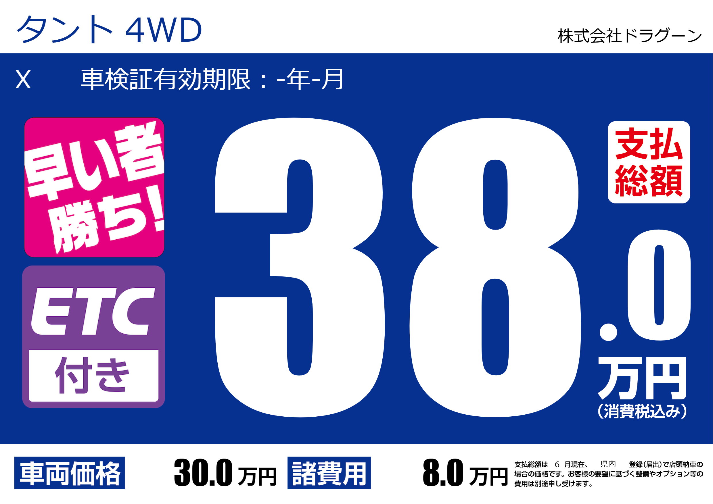 | 車名 | タント 4WD | グレード ミッション 排気量 |
