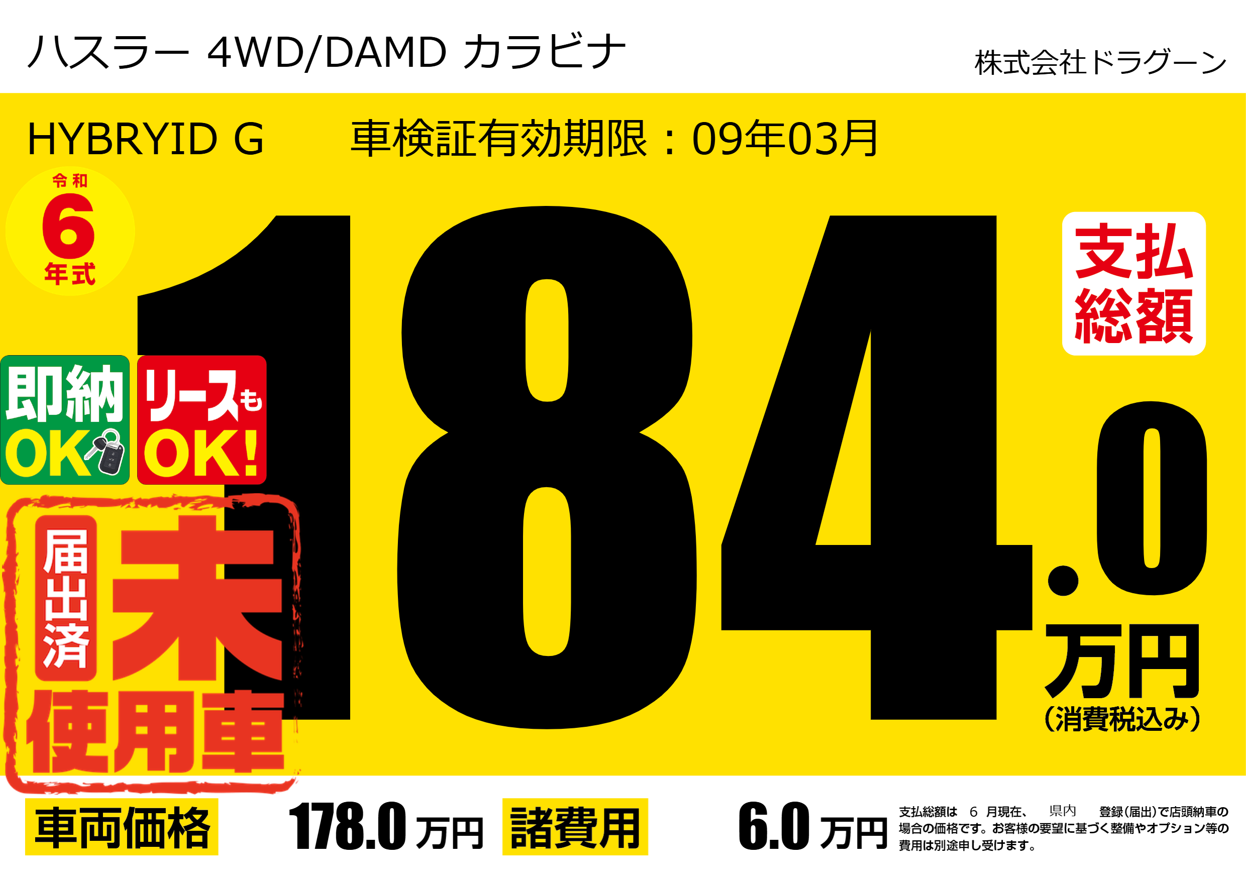 | 車名 | ハスラー 4WD/DAMD カラビナ | グレード ミッション 排気量 |