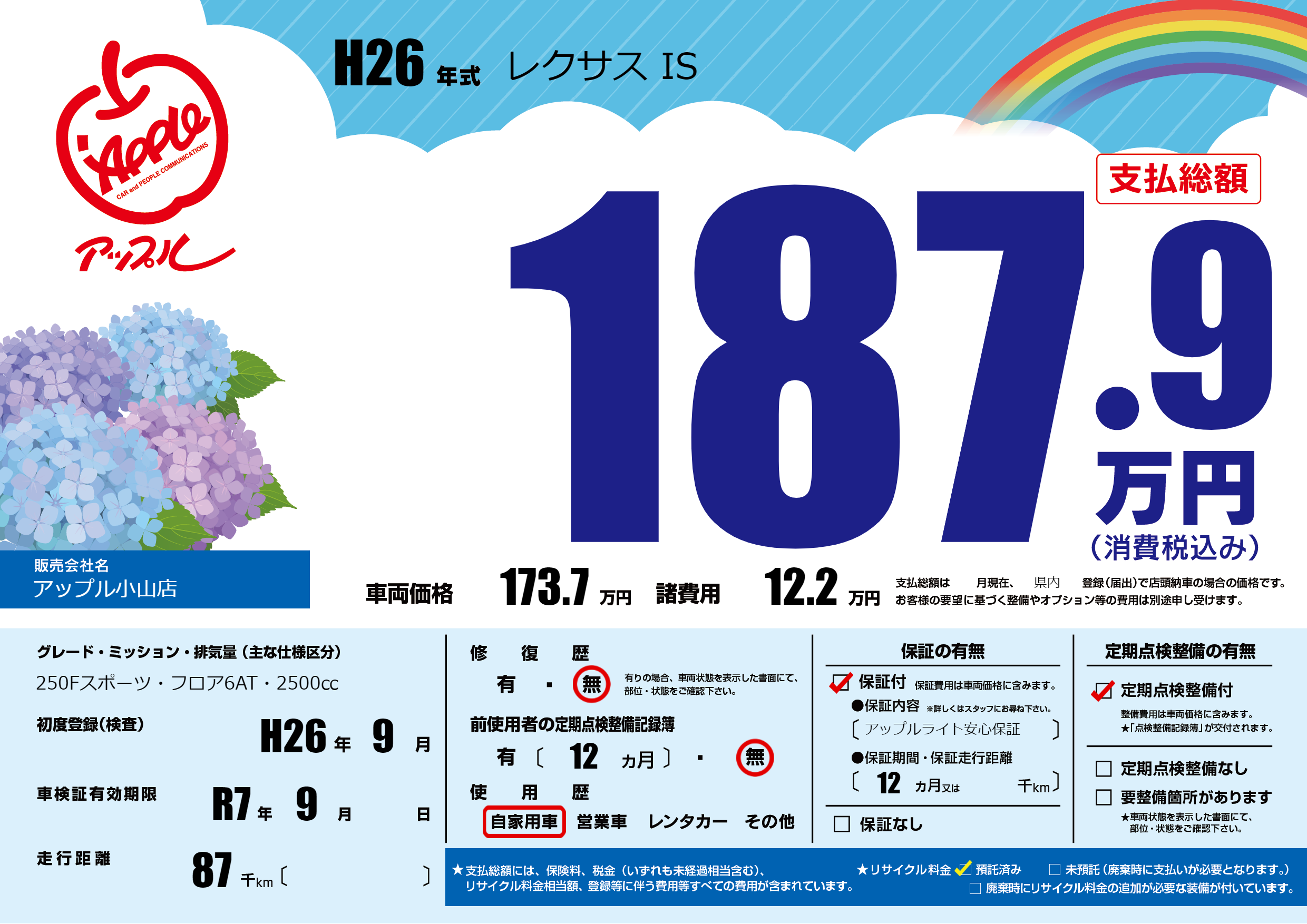 | 車名 | レクサス IS | グレード ミッション 排気量 |