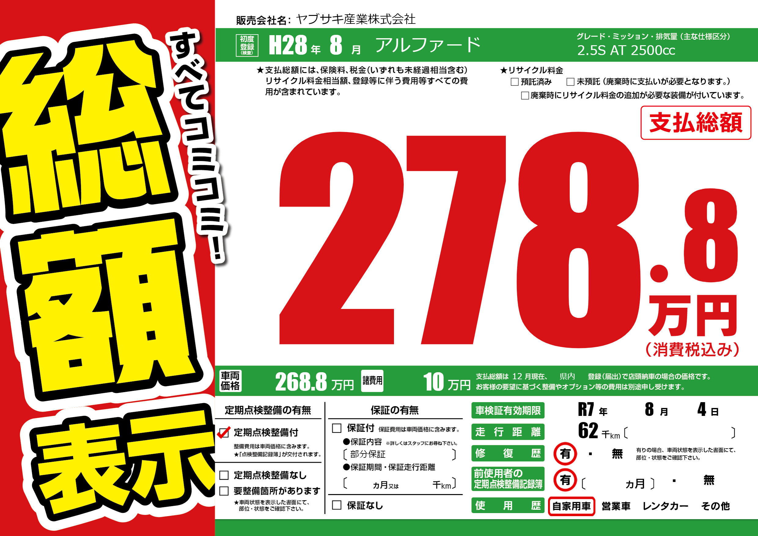 | 車検制限 | R7年 8月 4日 | ||