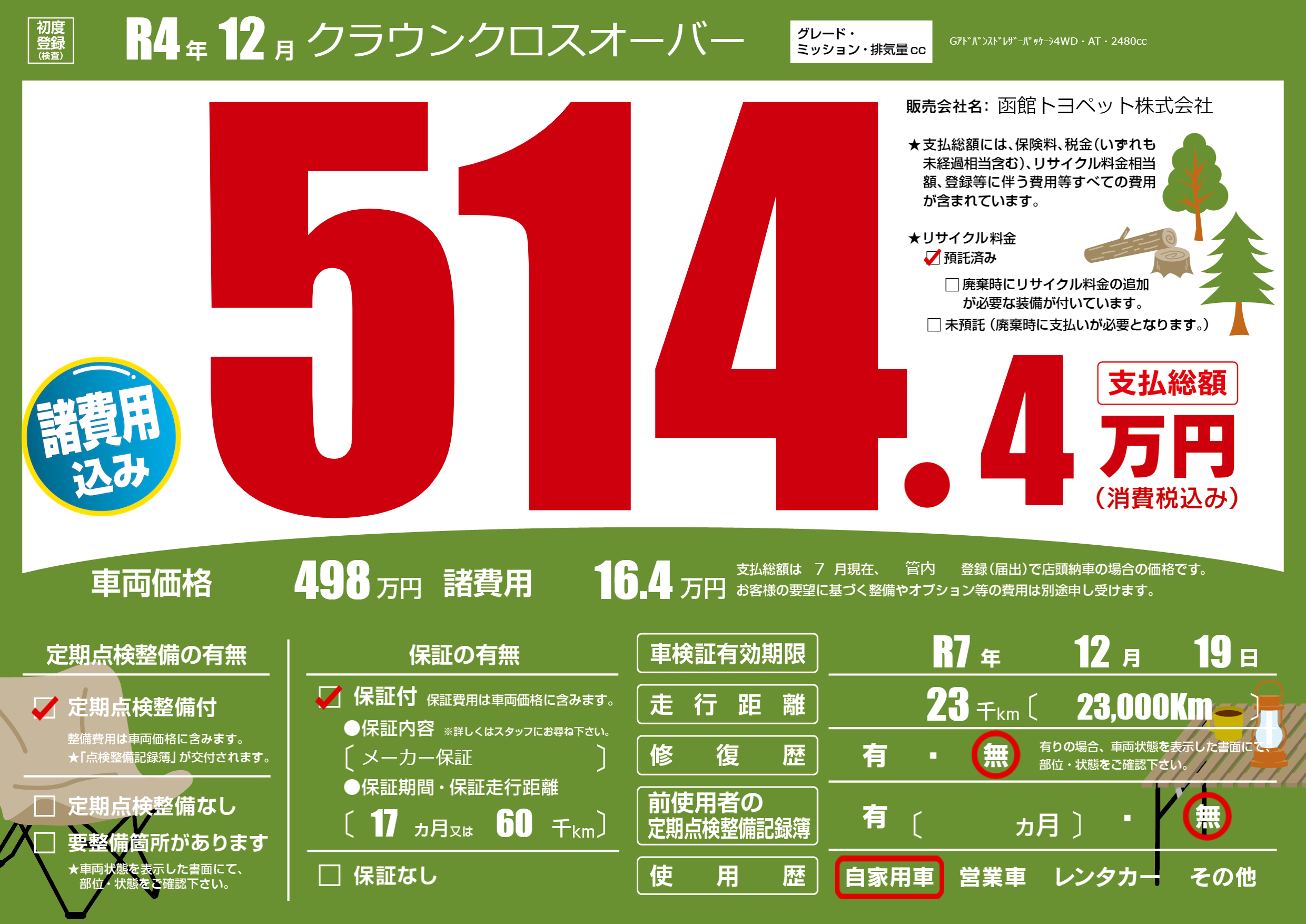 | 走行キロ | 2.3万km | 初年度登録 | R4年12月 |