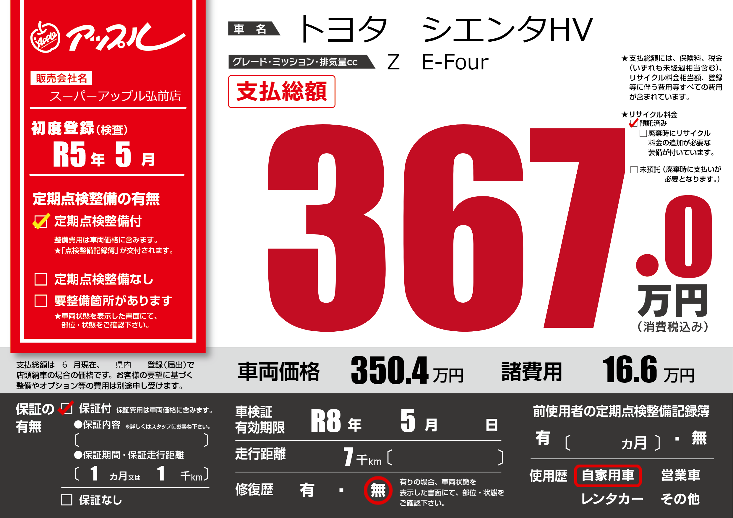 | 車検制限 | R8年 5月 - 日 | ||