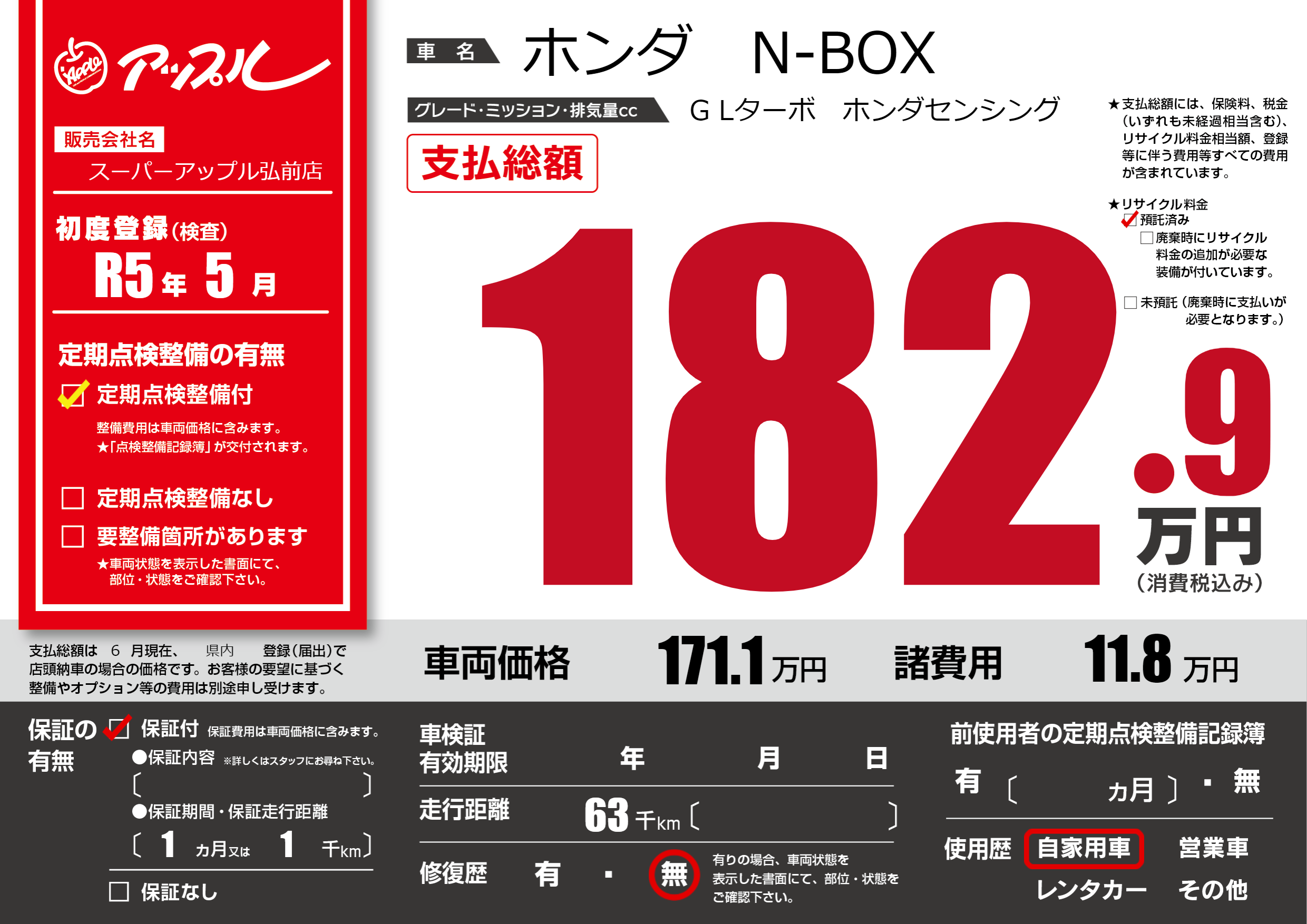 | 走行キロ | 6.3万km | 初年度登録 | R5年5月 |