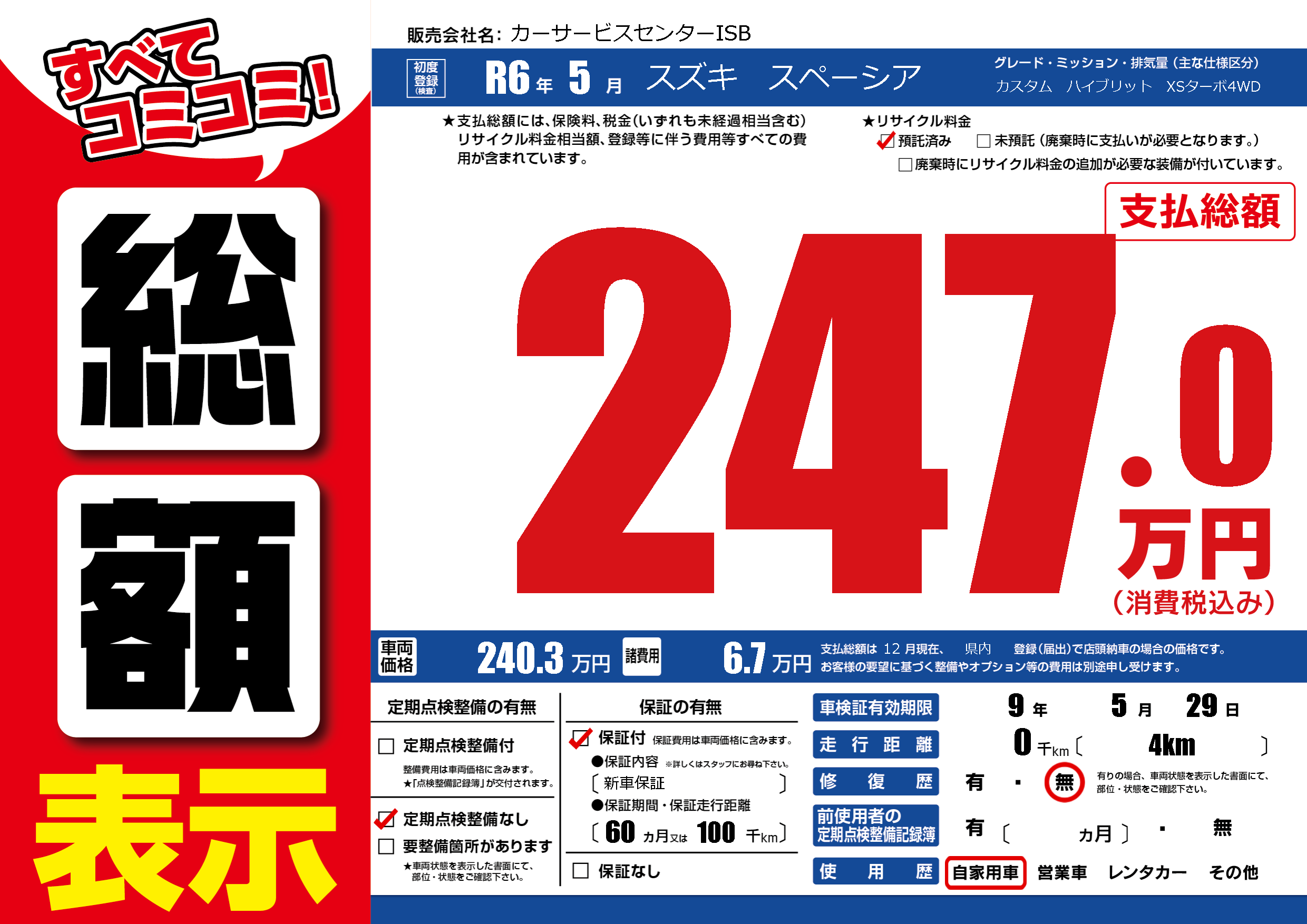 | 走行キロ | - | 初年度登録 | R6年5月 |