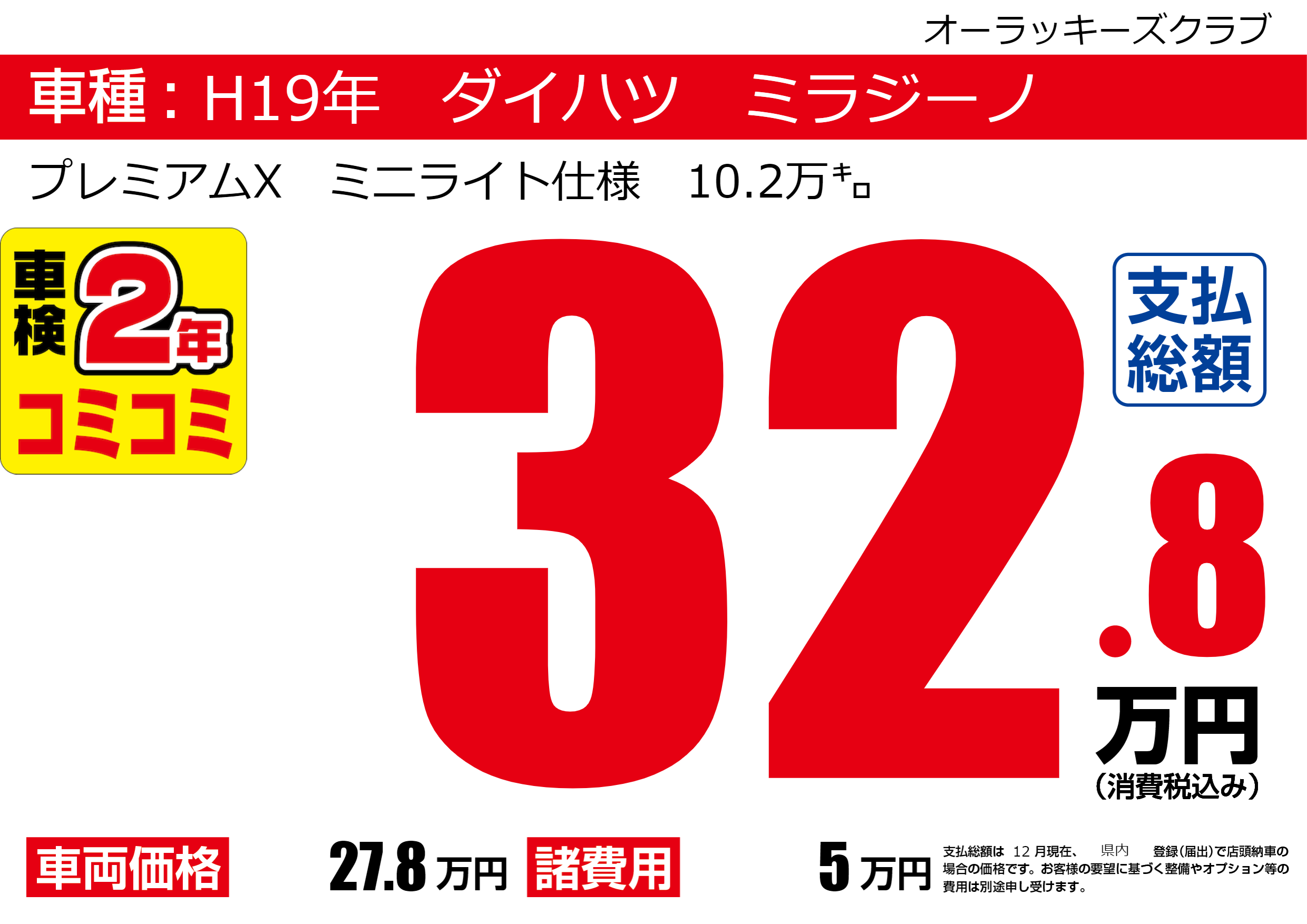 | 車名 | H19年 ダイハツ ミラジーノ | グレード ミッション 排気量 |