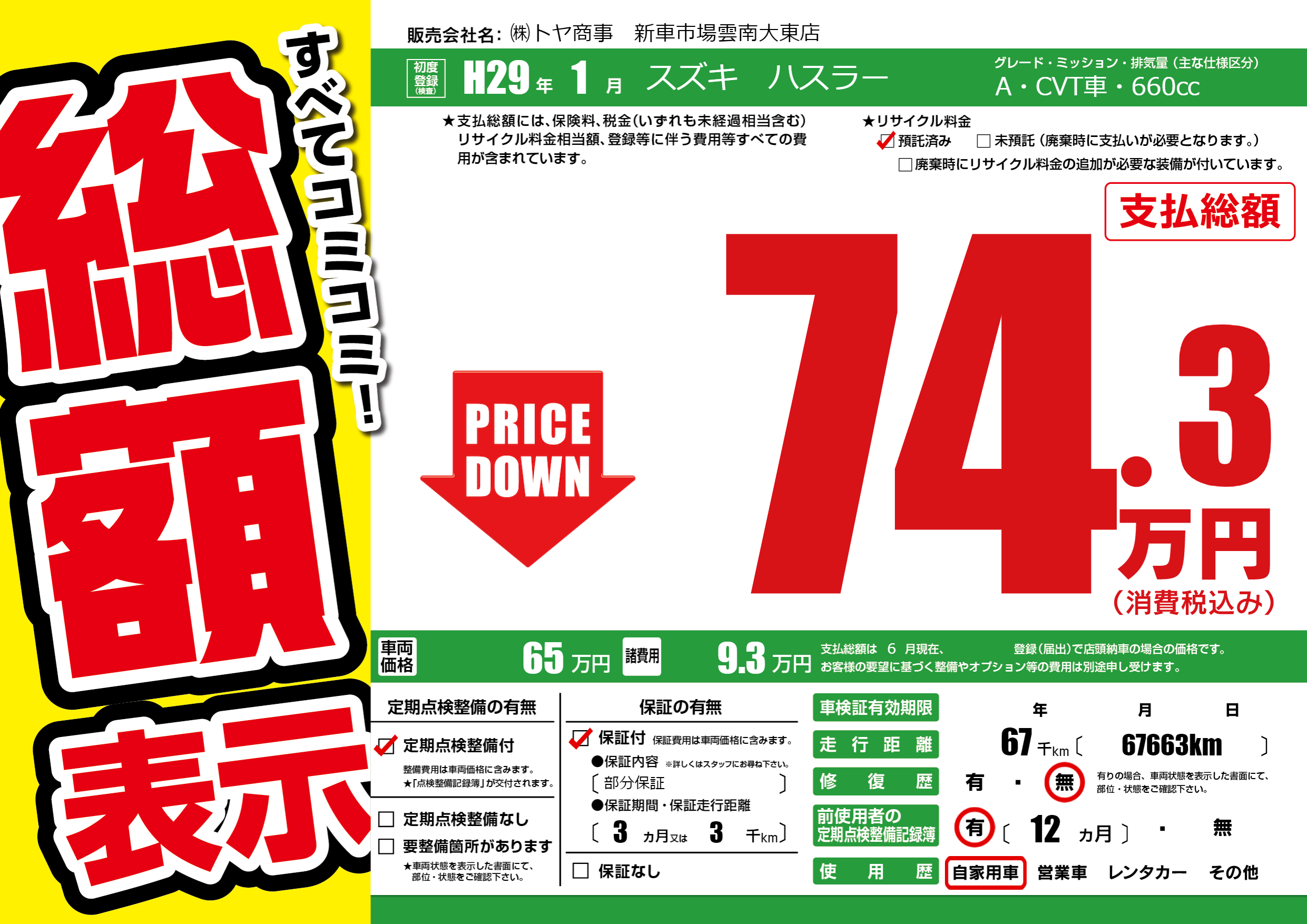 | 走行キロ | 6.7万km | 初年度登録 | H29年1月 |