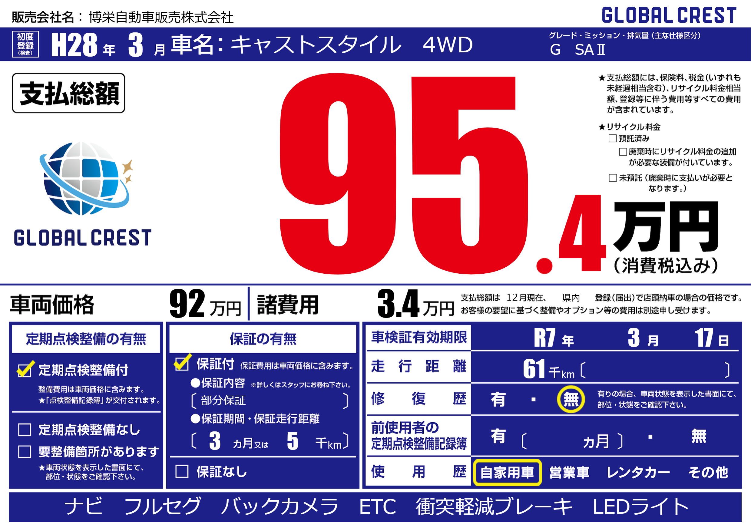 | 車検制限 | R7年 3月 17日 | ||