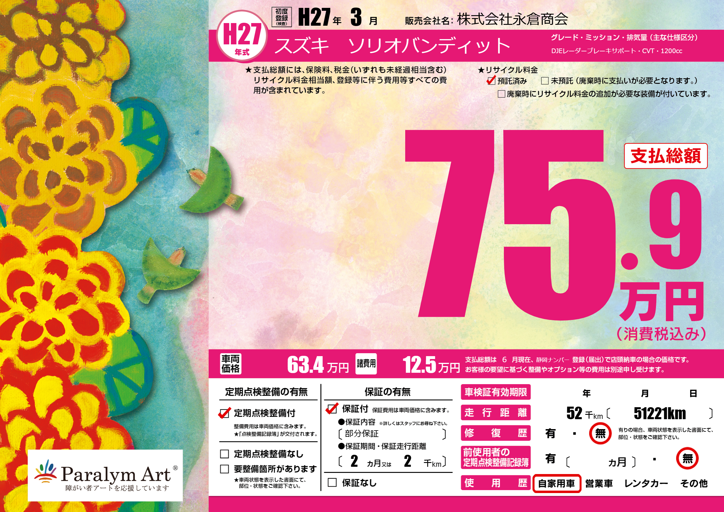 | 車名 | スズキ ソリオバンディット | グレード ミッション 排気量 |