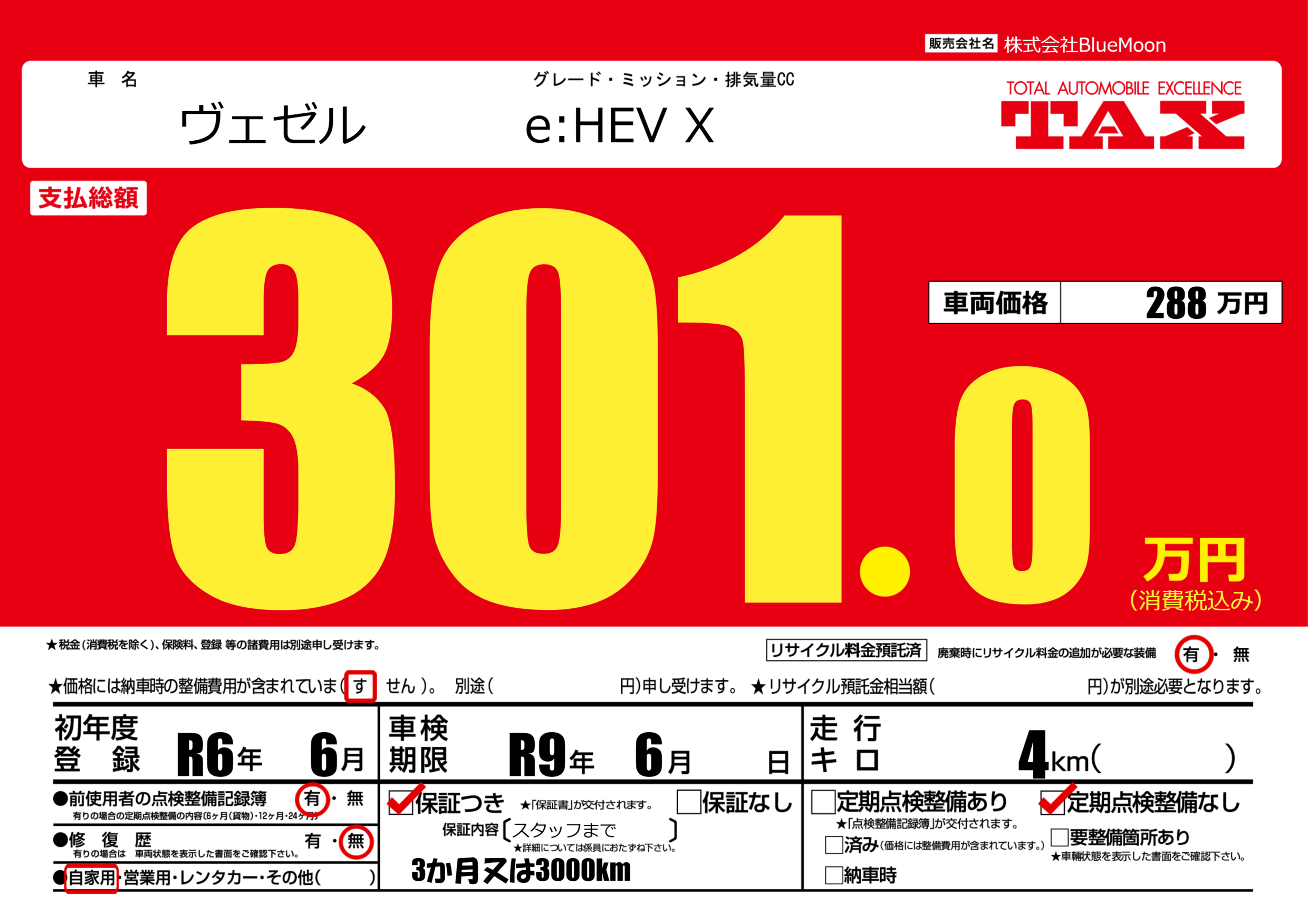 | 走行キロ | 0.4万km | 初年度登録 | R6年6月 |