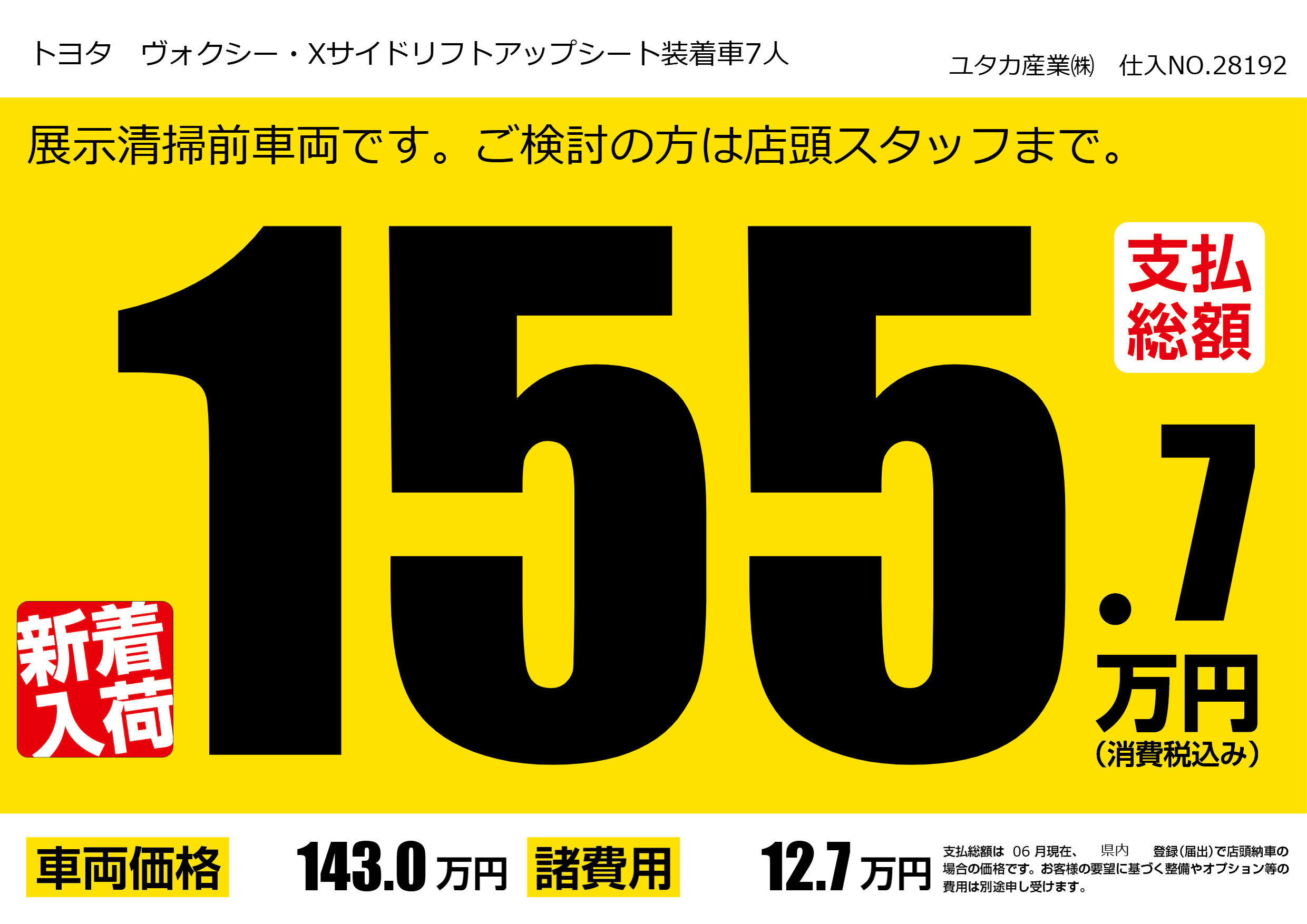 展示清掃前車両です。ご検討の方は店頭スタッフまで。 |
